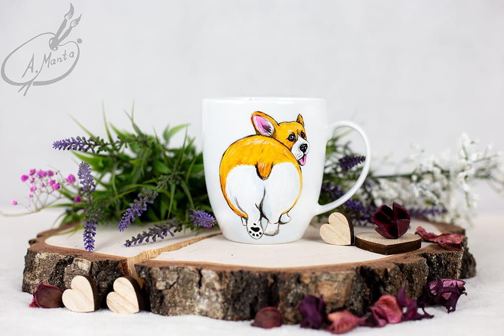 Wyjątkowy, ręcznie malowany kubek Welsh Corgi.