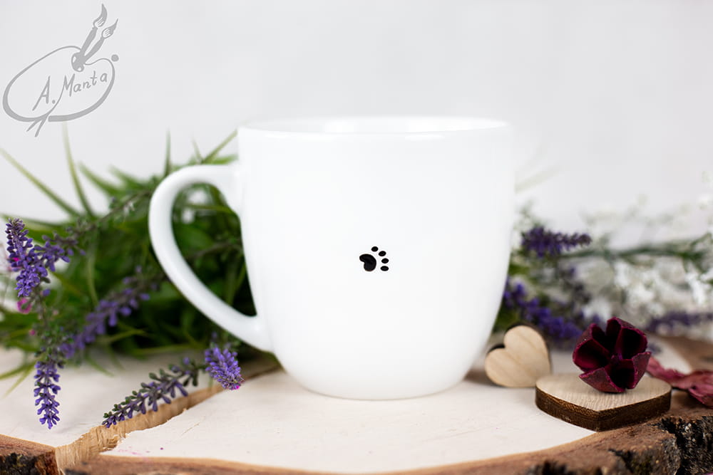 Standardowo rewers kubka ma namalowaną psią łapkę, bez napisów.