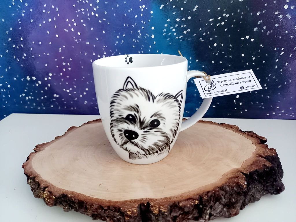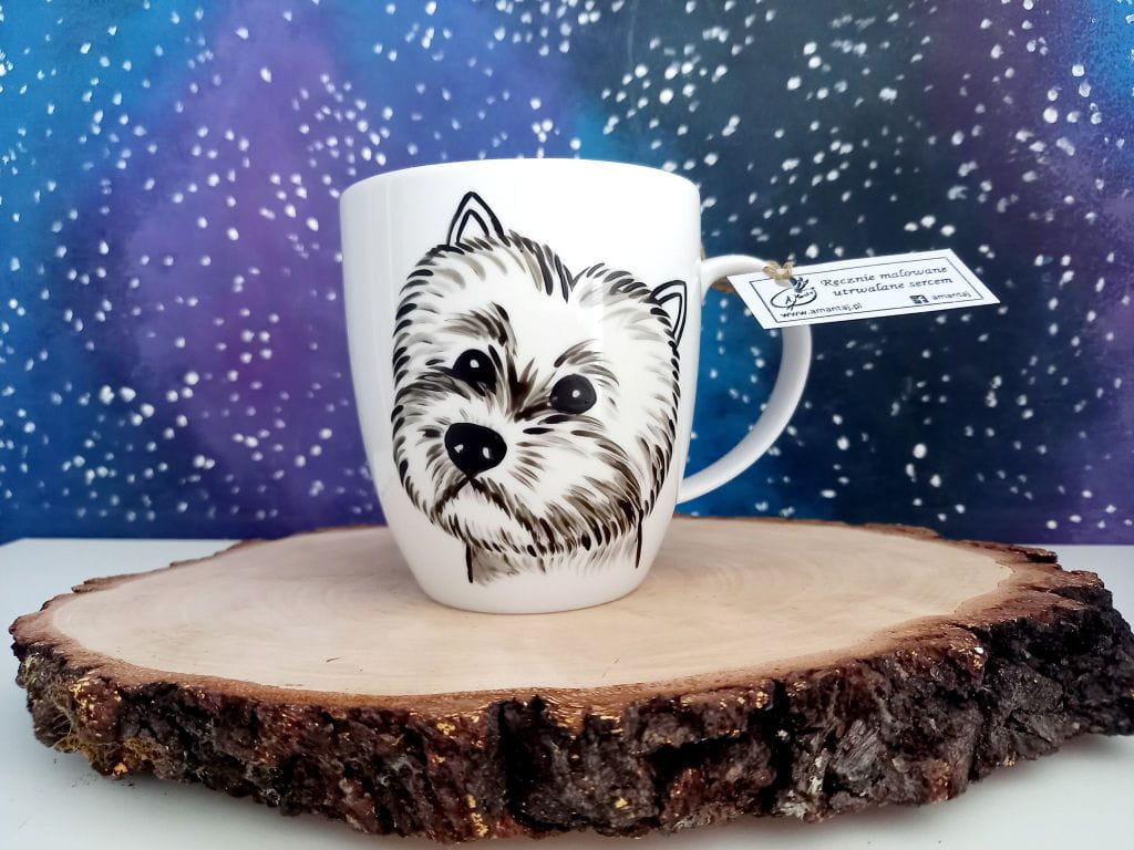 Wyjątkowy, ręcznie malowany kubek z autorskim motywem West Highland White Terriera.