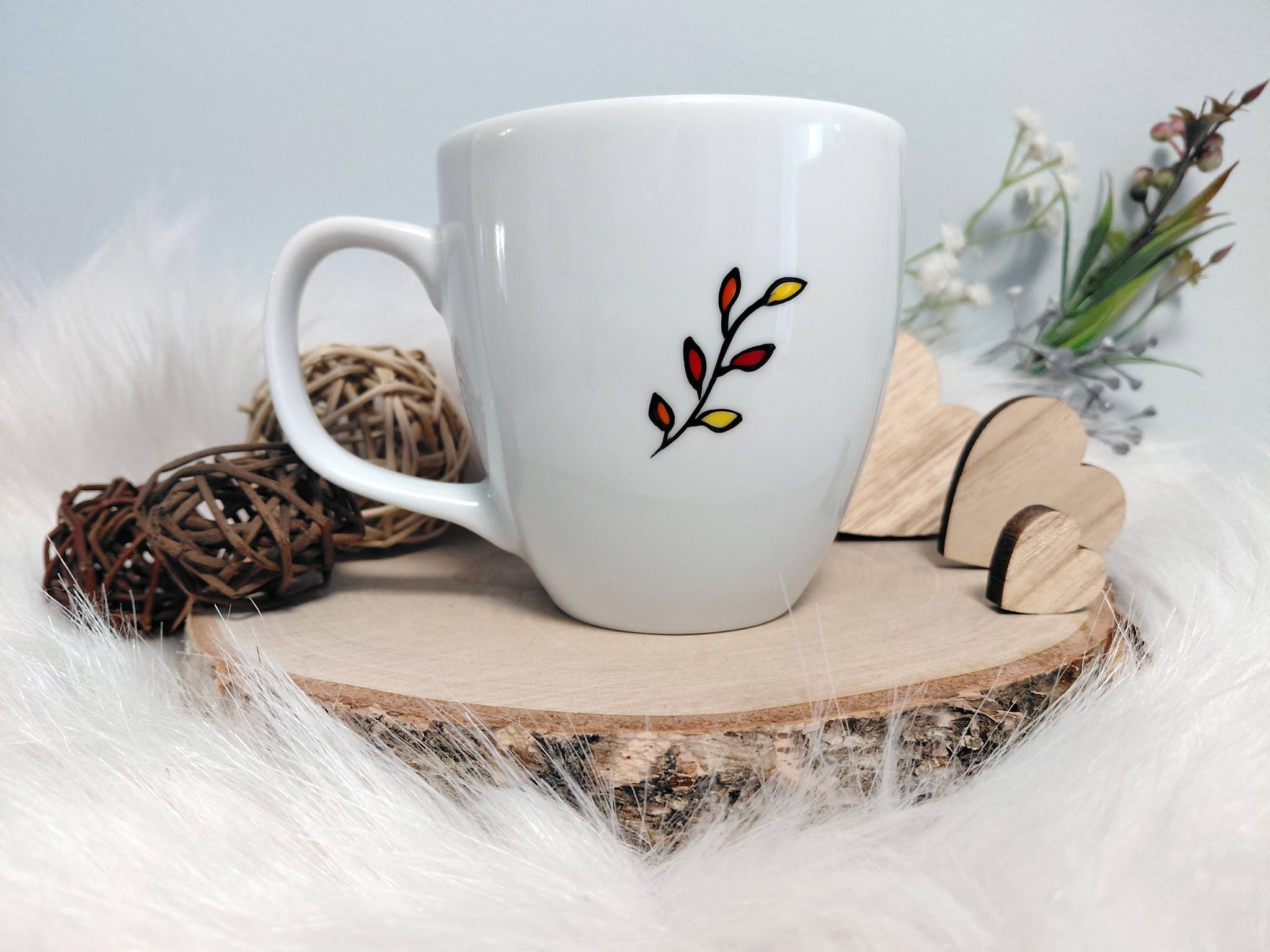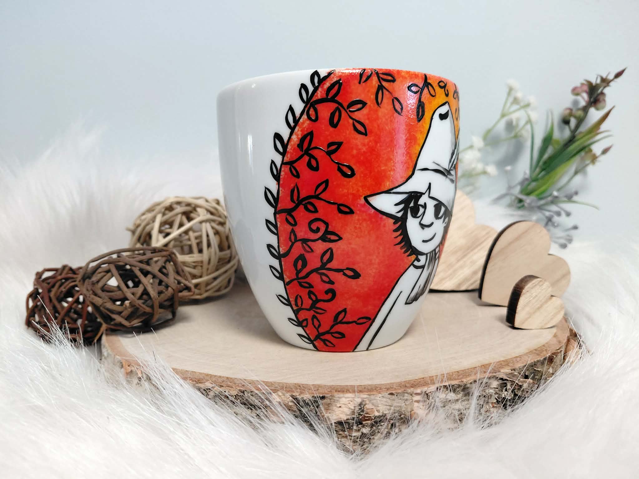 Kubek malowany specjalistycznymi farbami do ceramiki, absolutnie bezpiecznymi, wypalany w 160 stopniach, przez co malunek jest bardzo trwały.
