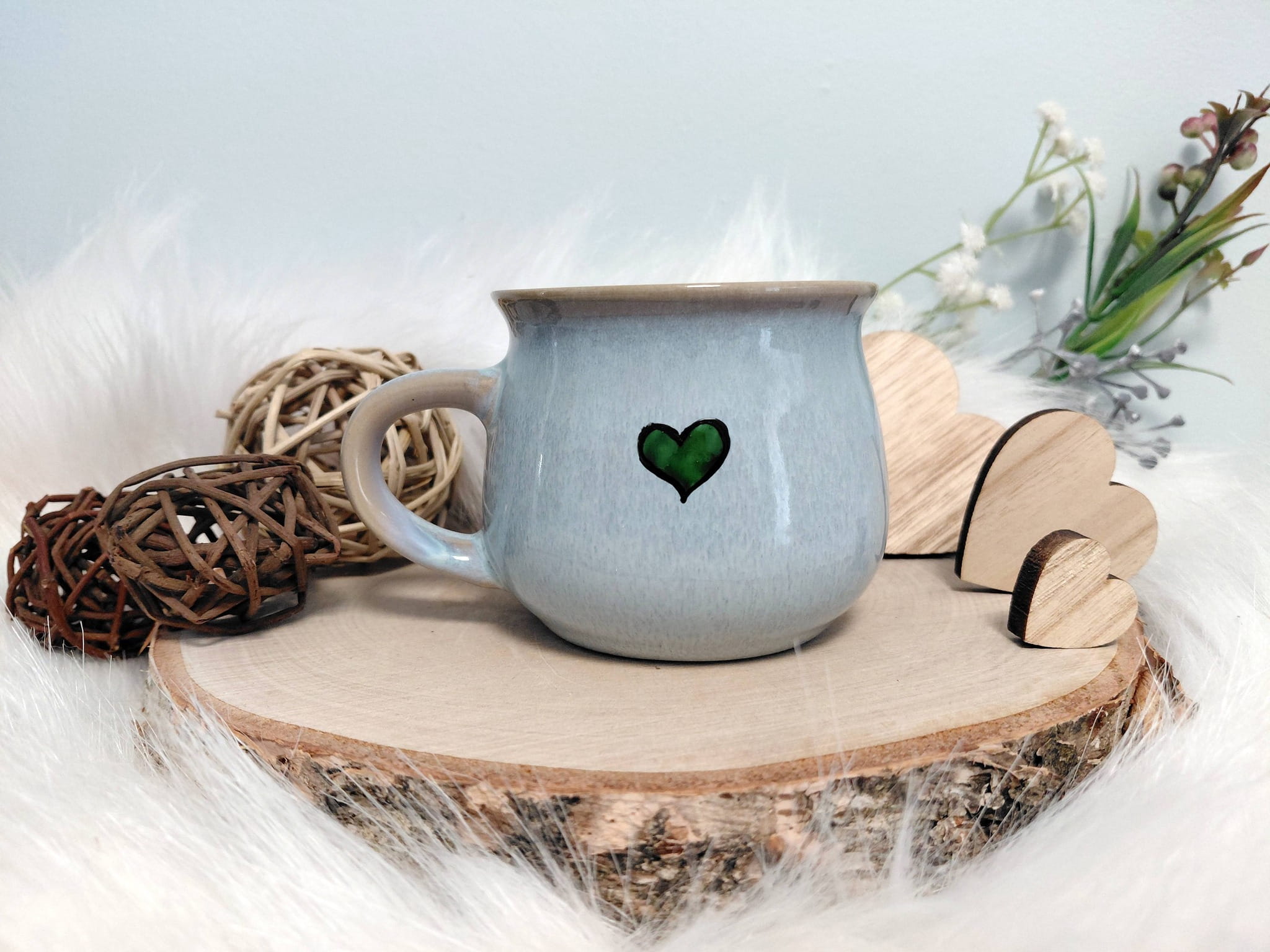 Kubek malowany specjalistycznymi farbami do ceramiki, absolutnie bezpiecznymi, wypalany w 160 stopniach, przez co malunek jest bardzo trwały.