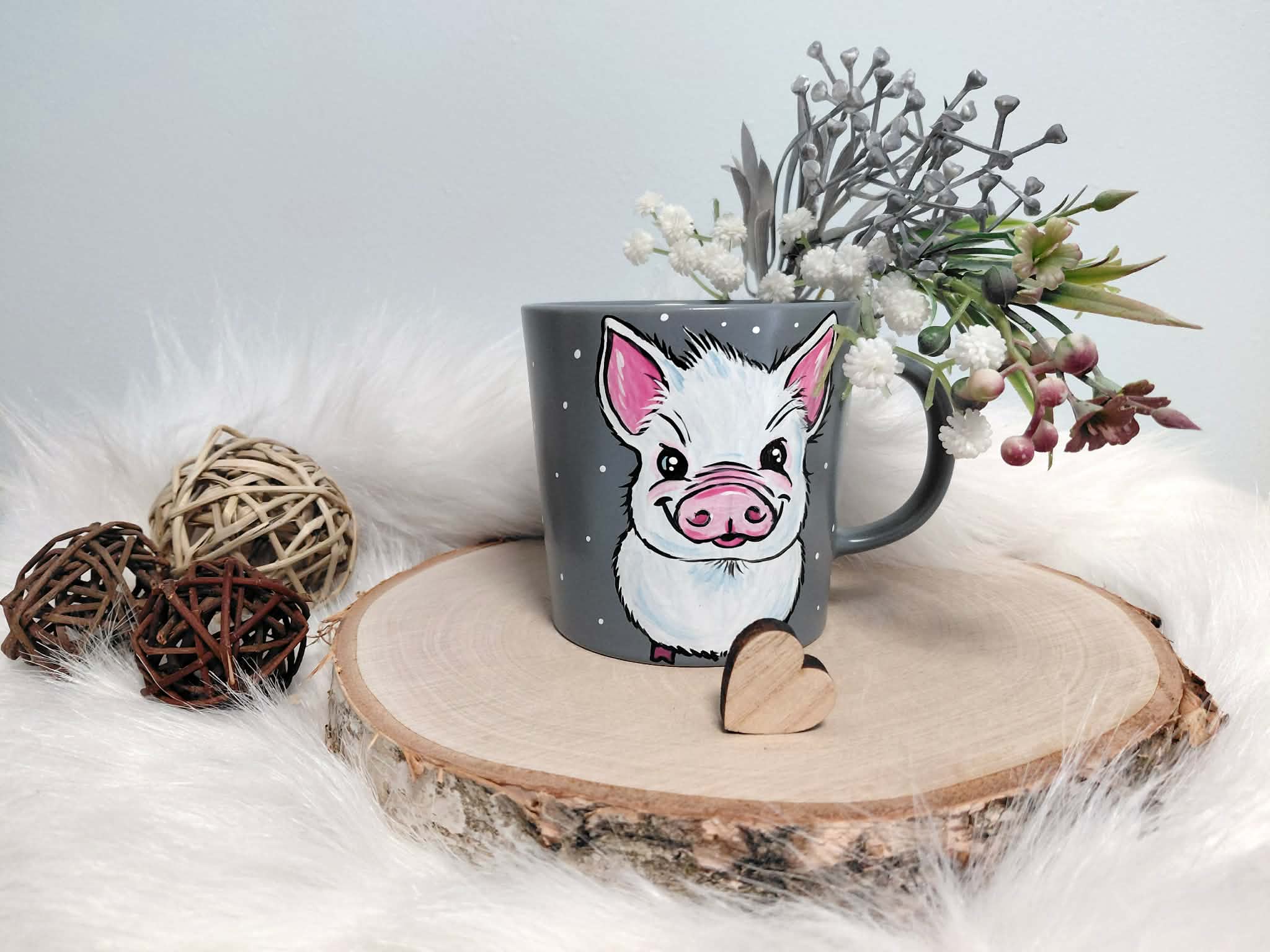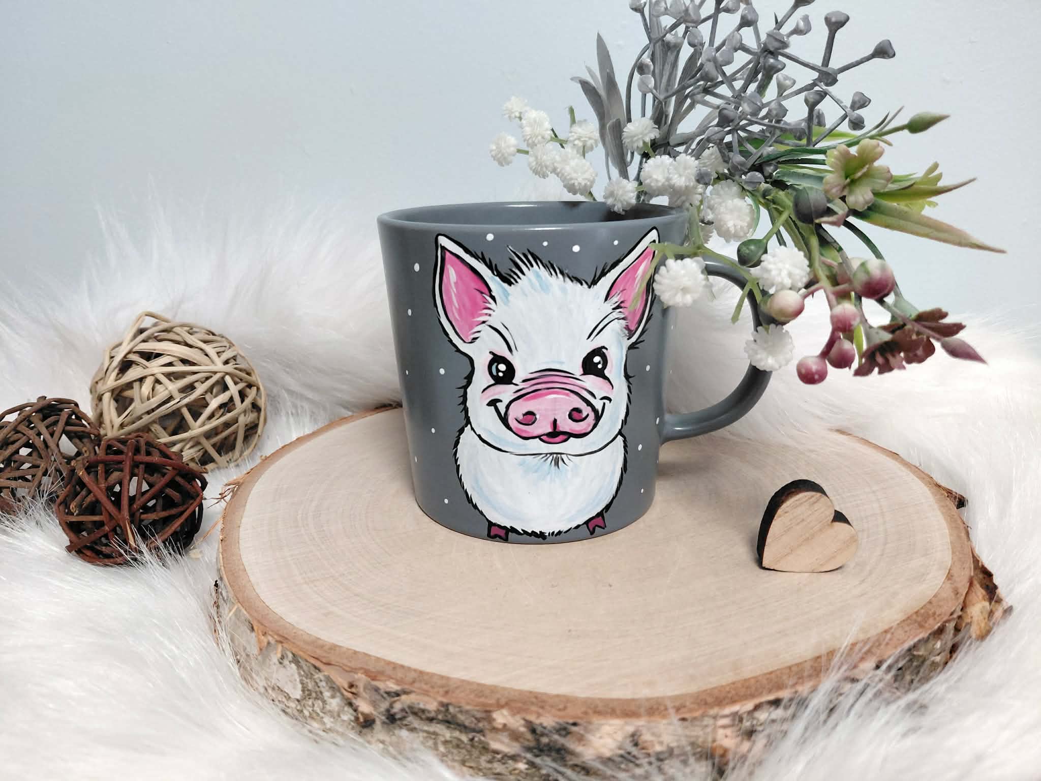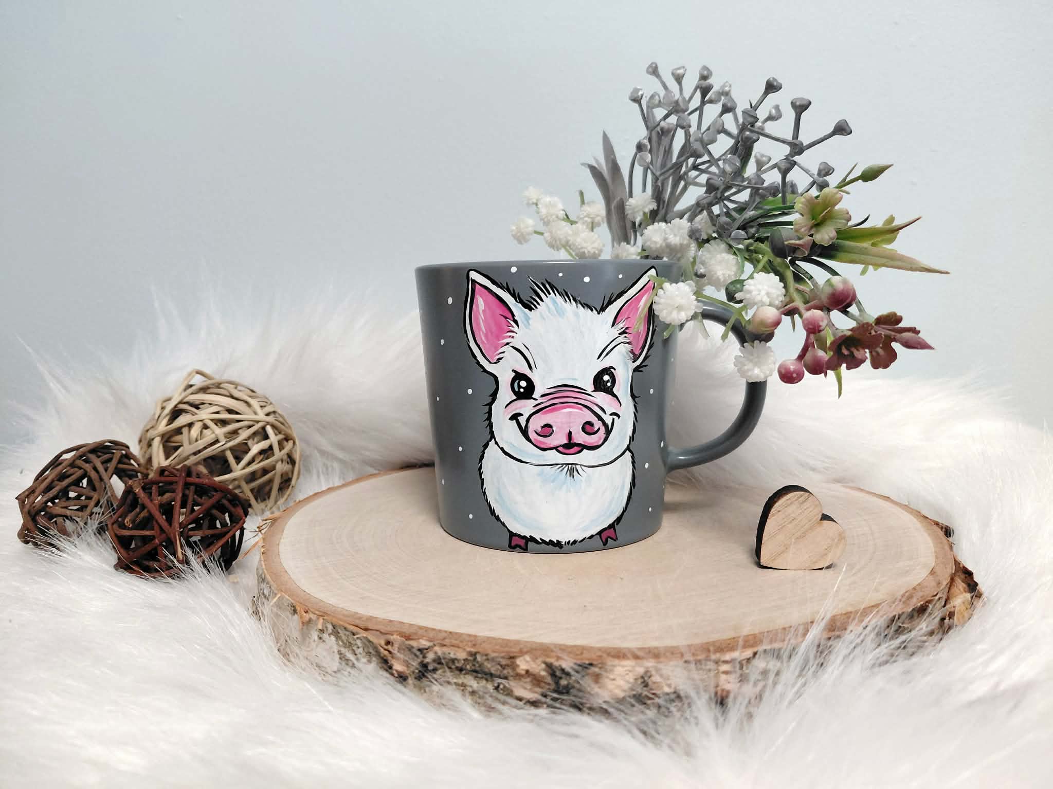 Wyjątkowy, ręcznie malowany kubek biała Świnka