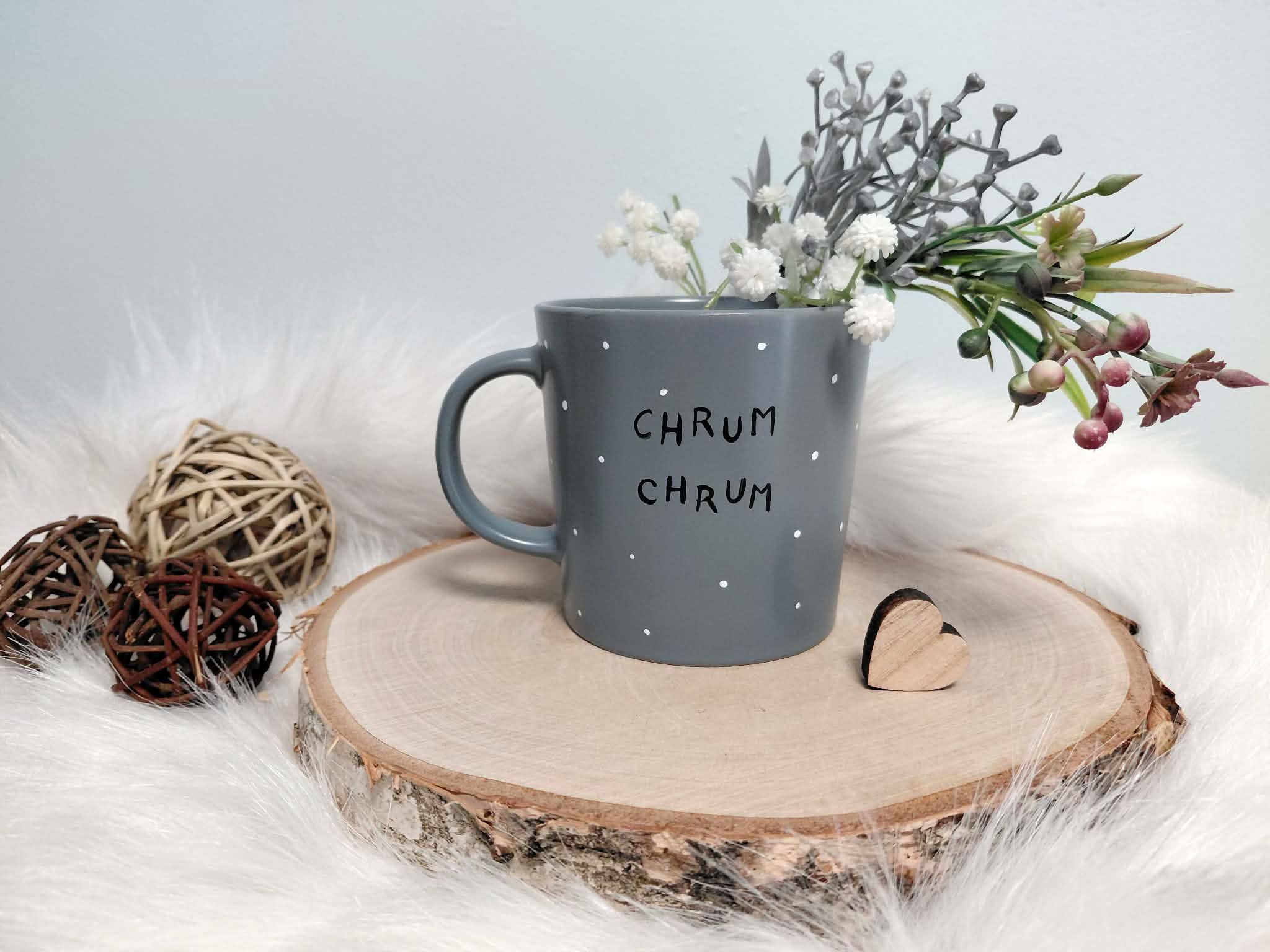 Kubek malowany specjalistycznymi farbami do ceramiki, absolutnie bezpiecznymi, wypalany w 160 stopniach, przez co malunek jest bardzo trwały. By cieszyć się nim dłuuugie lata, zaleca się mycie ręczne :)