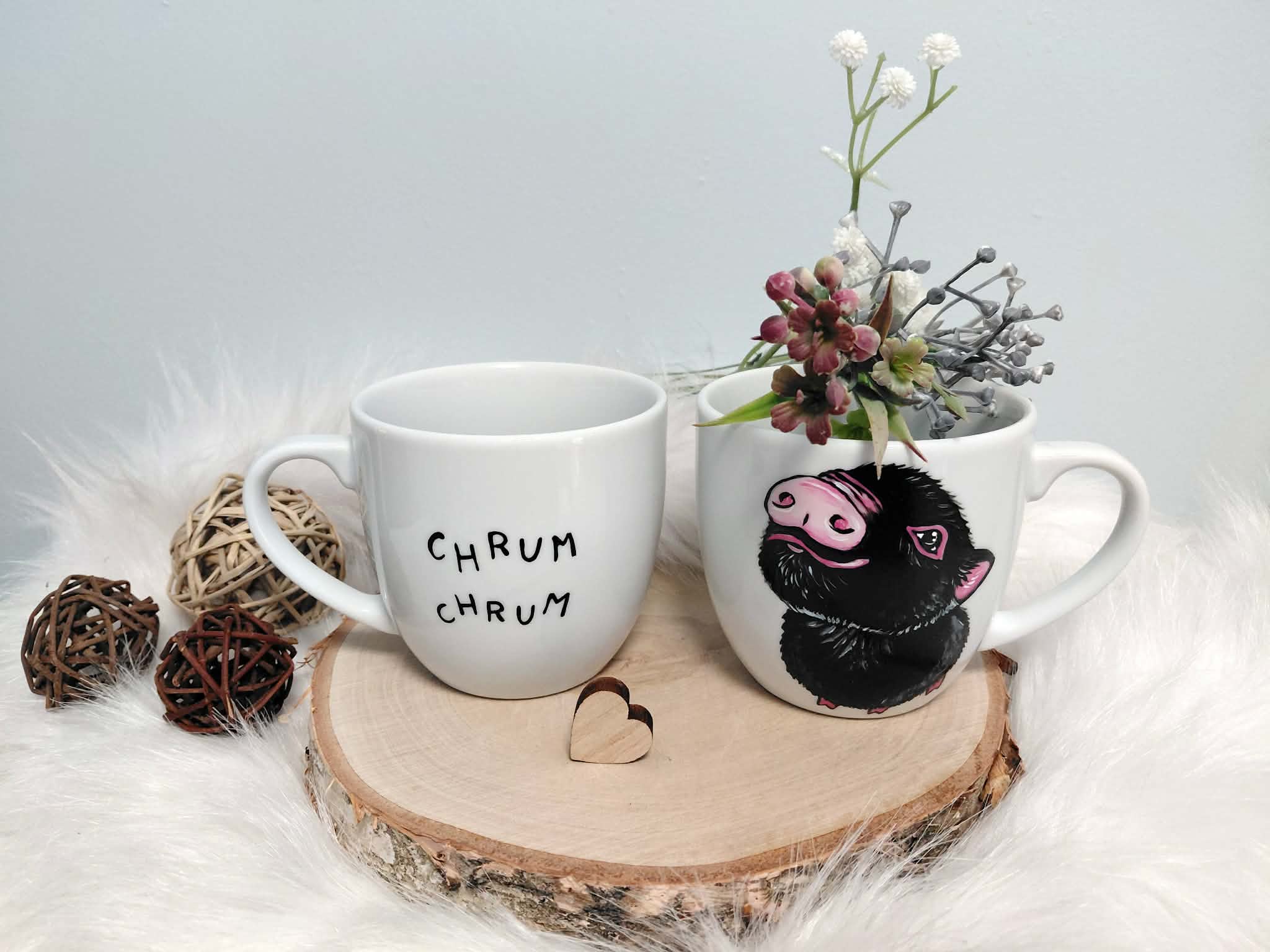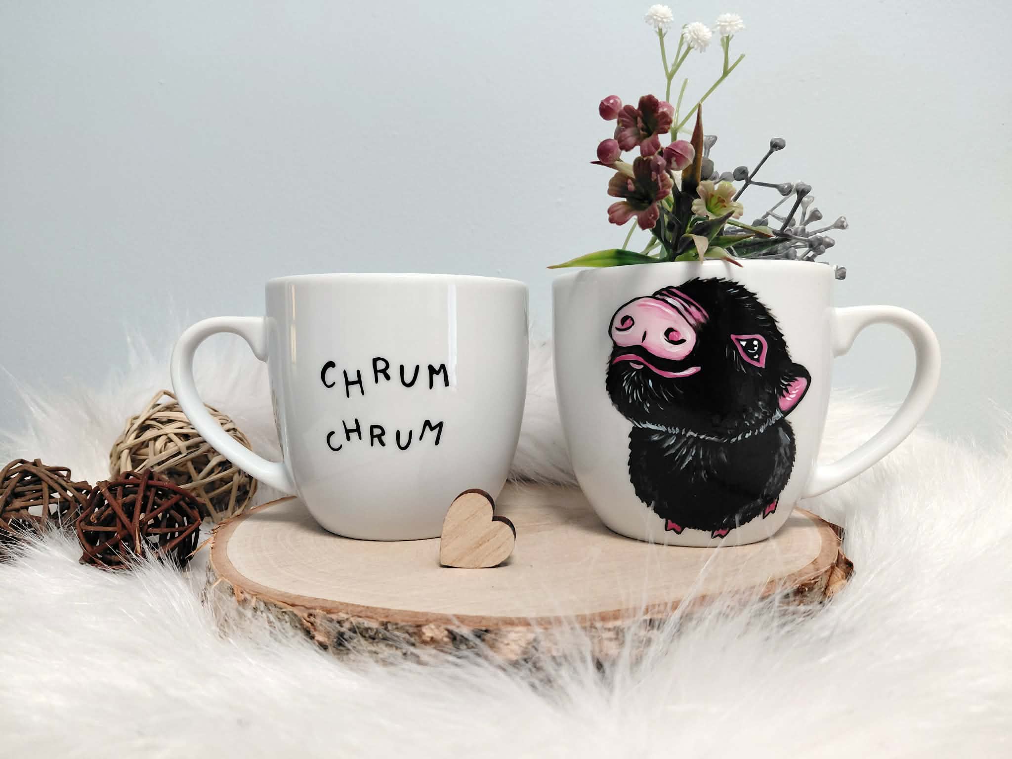 Wyjątkowy, ręcznie malowany kubek czarna Świnka