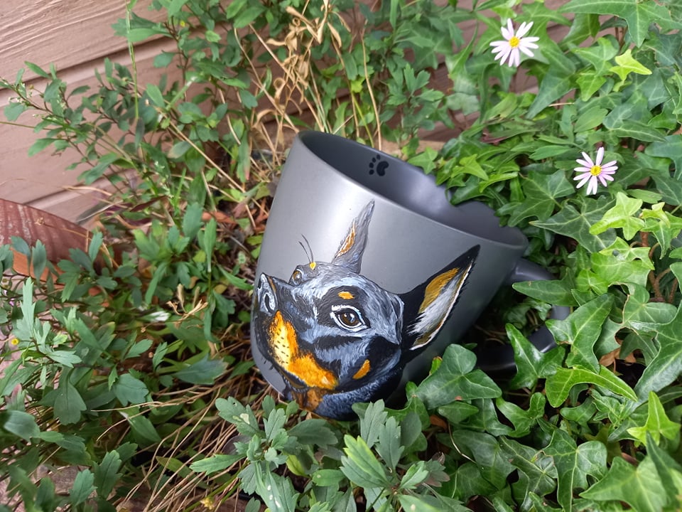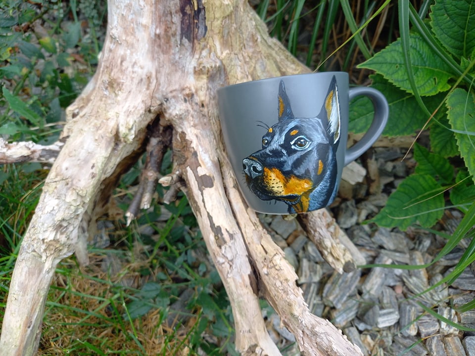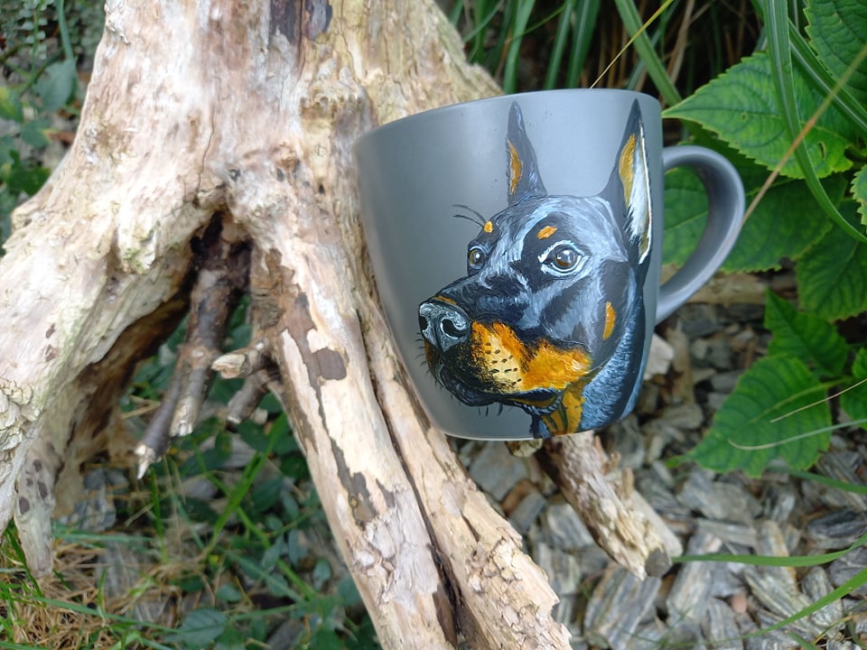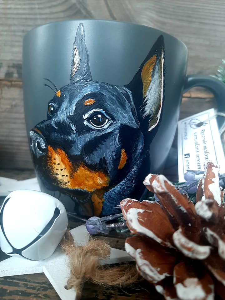 Kubek ręcznie malowany doberman