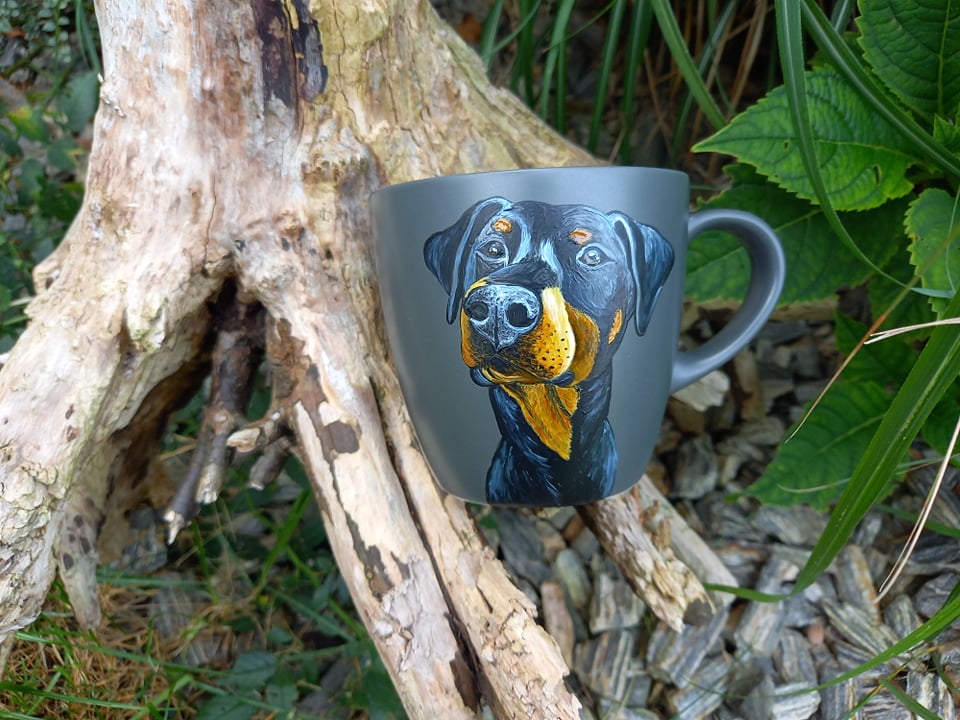 Kubek ręcznie malowany doberman (1)