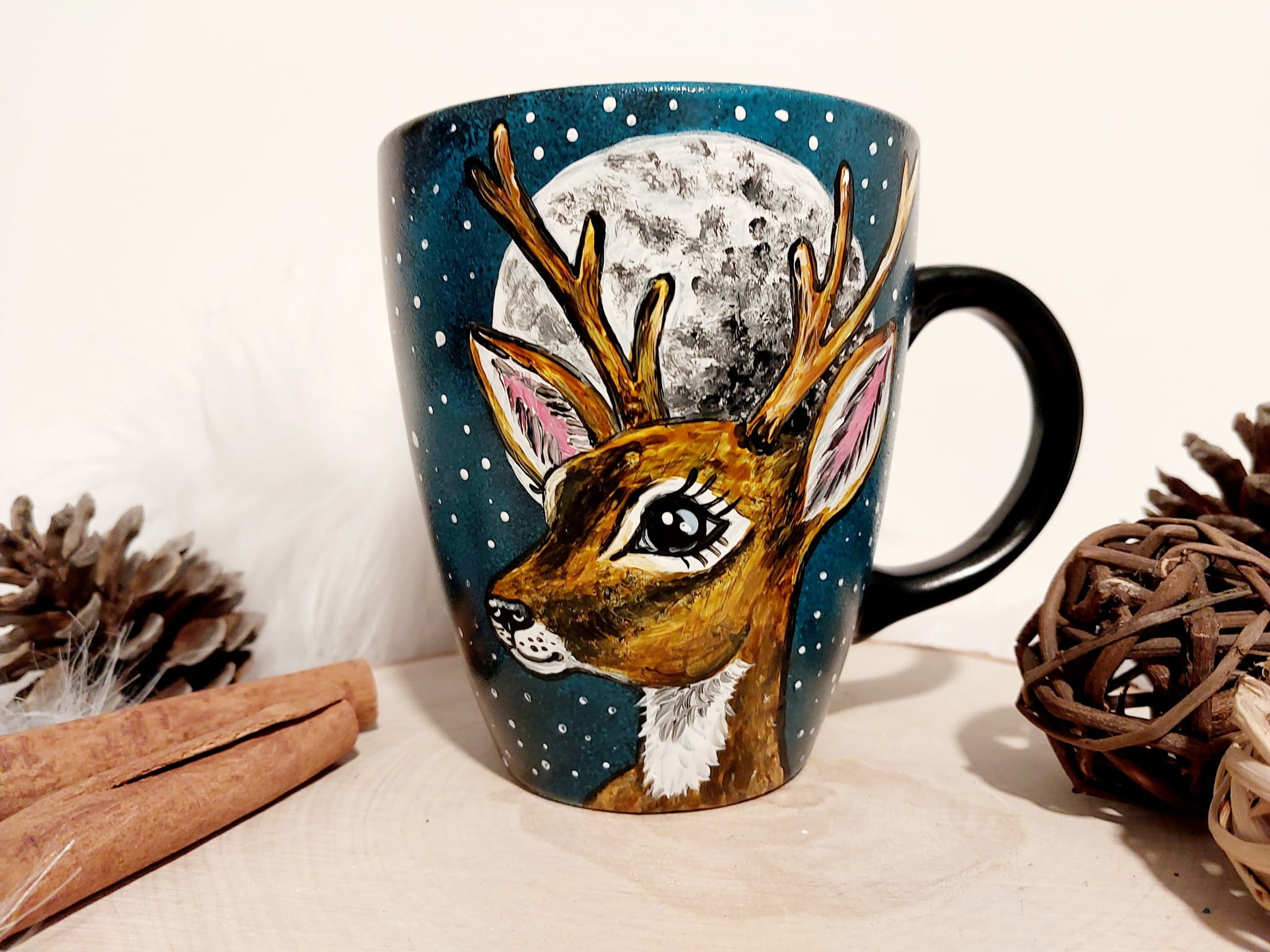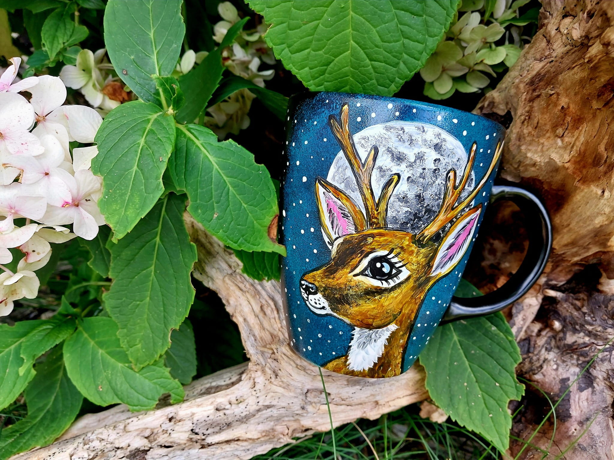 Wyjątkowy, ręcznie malowany kubek Jelonek
