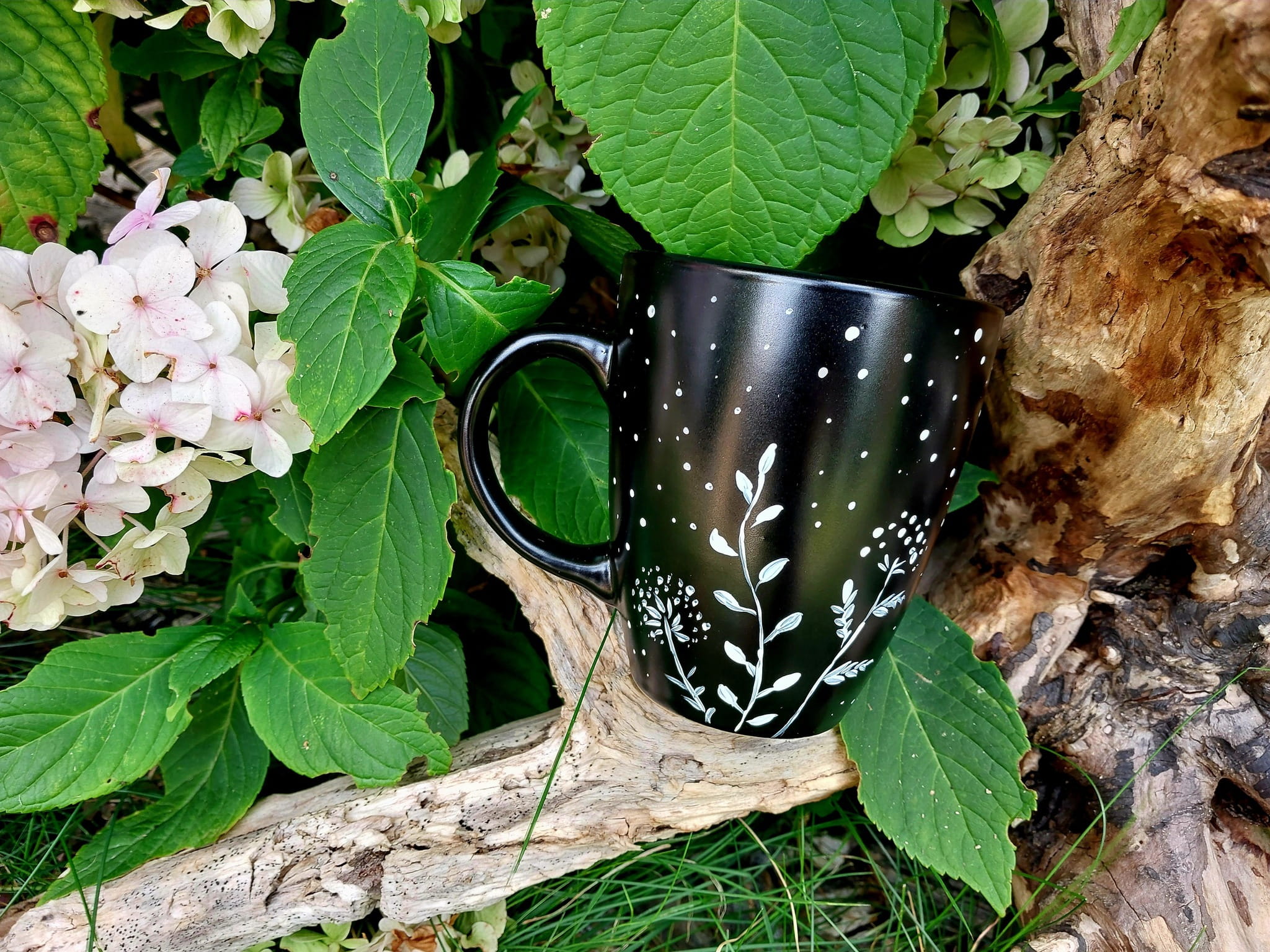Kubek malowany specjalistycznymi farbami do ceramiki, absolutnie bezpiecznymi, wypalany w 160 stopniach, przez co malunek jest bardzo trwały. By cieszyć się nim dłuuugie lata, zaleca się mycie ręczne :)