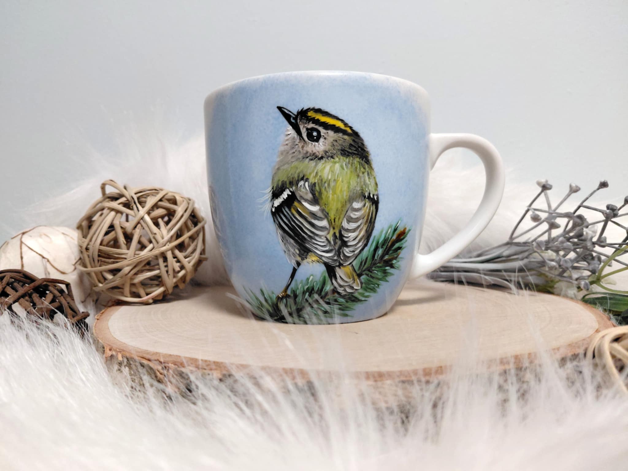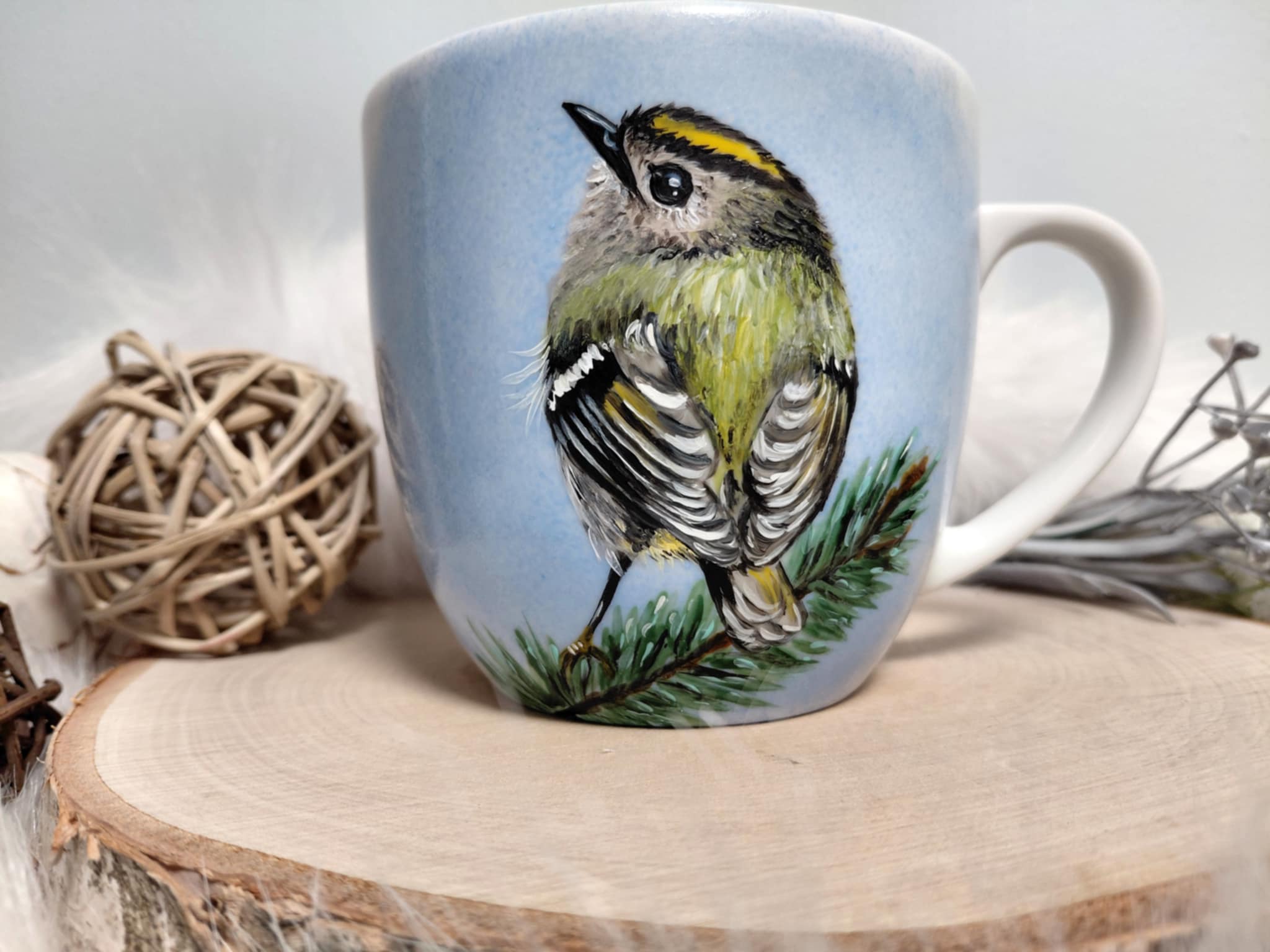Wyjątkowy, ręcznie malowany kubek Ptak Mysikrólik