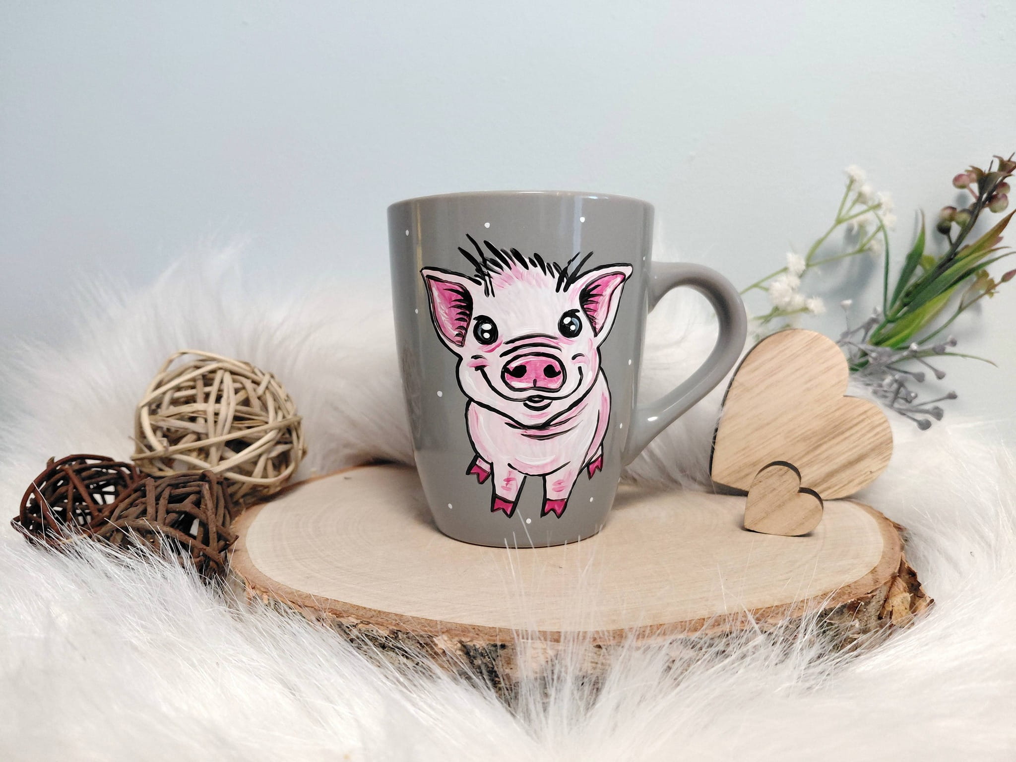 Wyjątkowy, ręcznie malowany kubek różowa Świnka