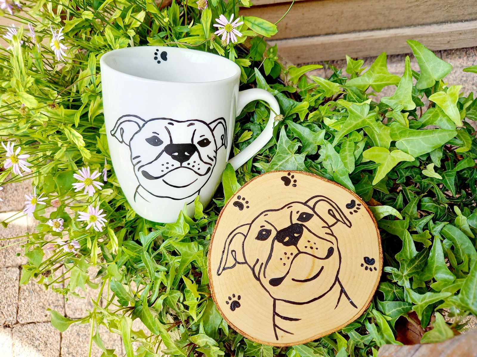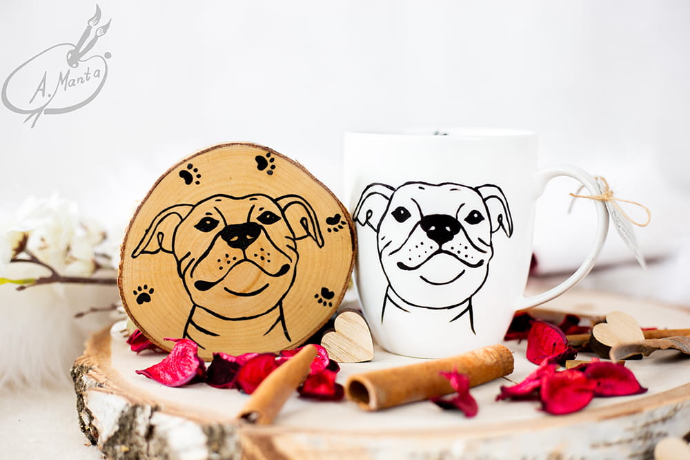 Wyjątkowy, ręcznie malowany zestaw kubek z podkładką Staffik