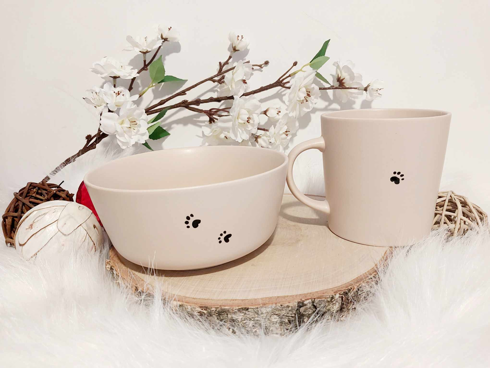 Standardowo rewers miseczki ma psie łapki, bez napisów.