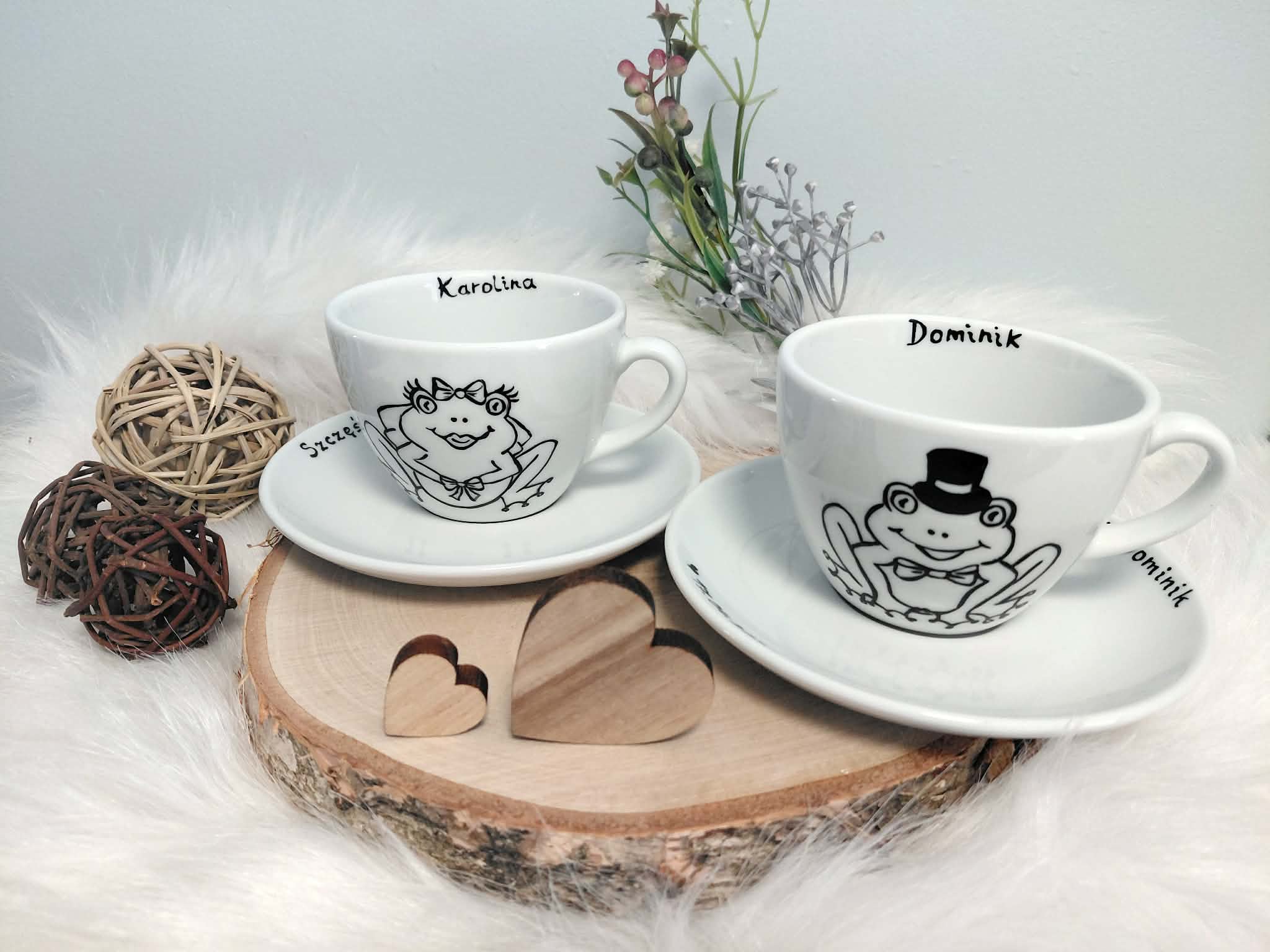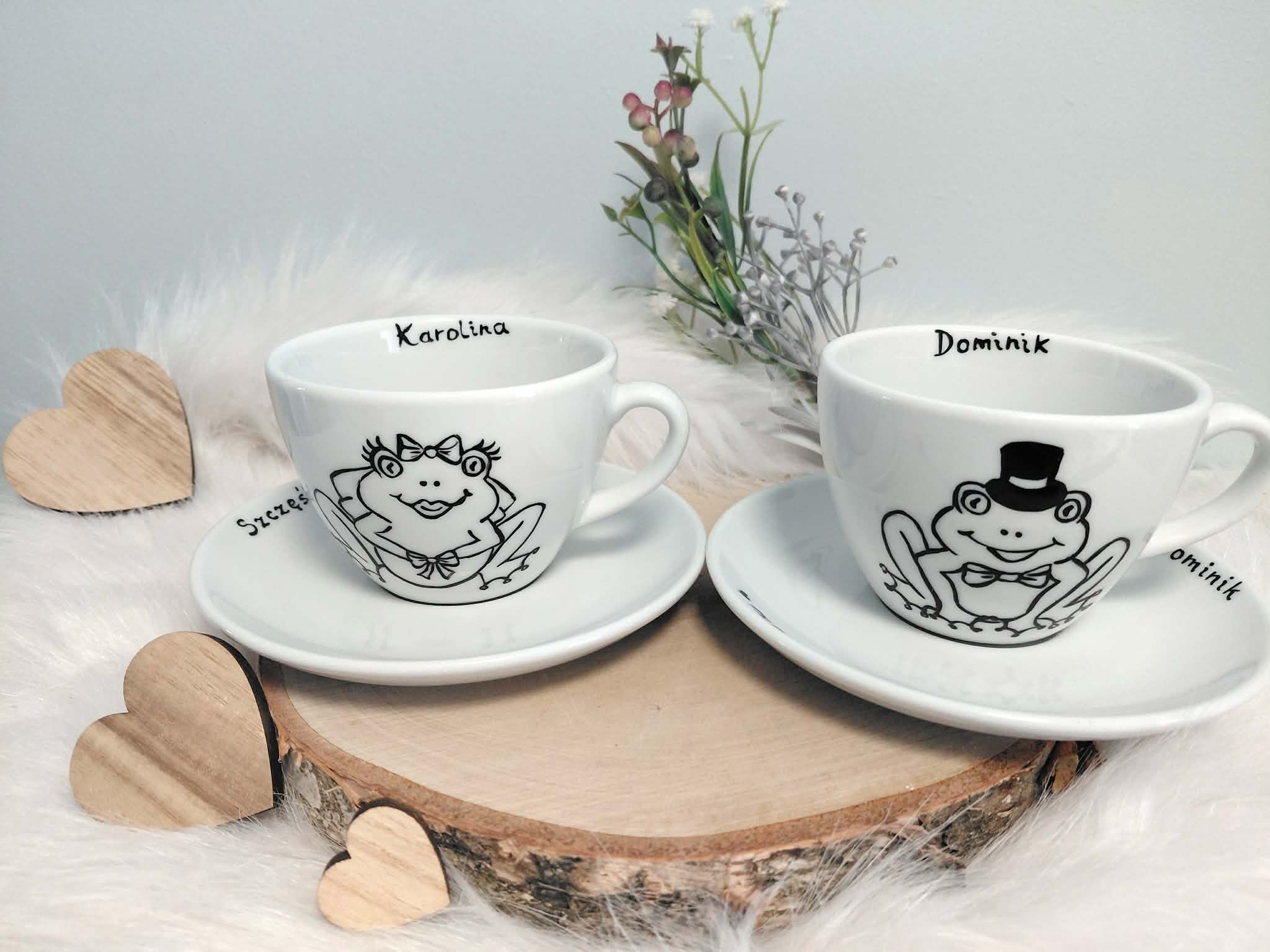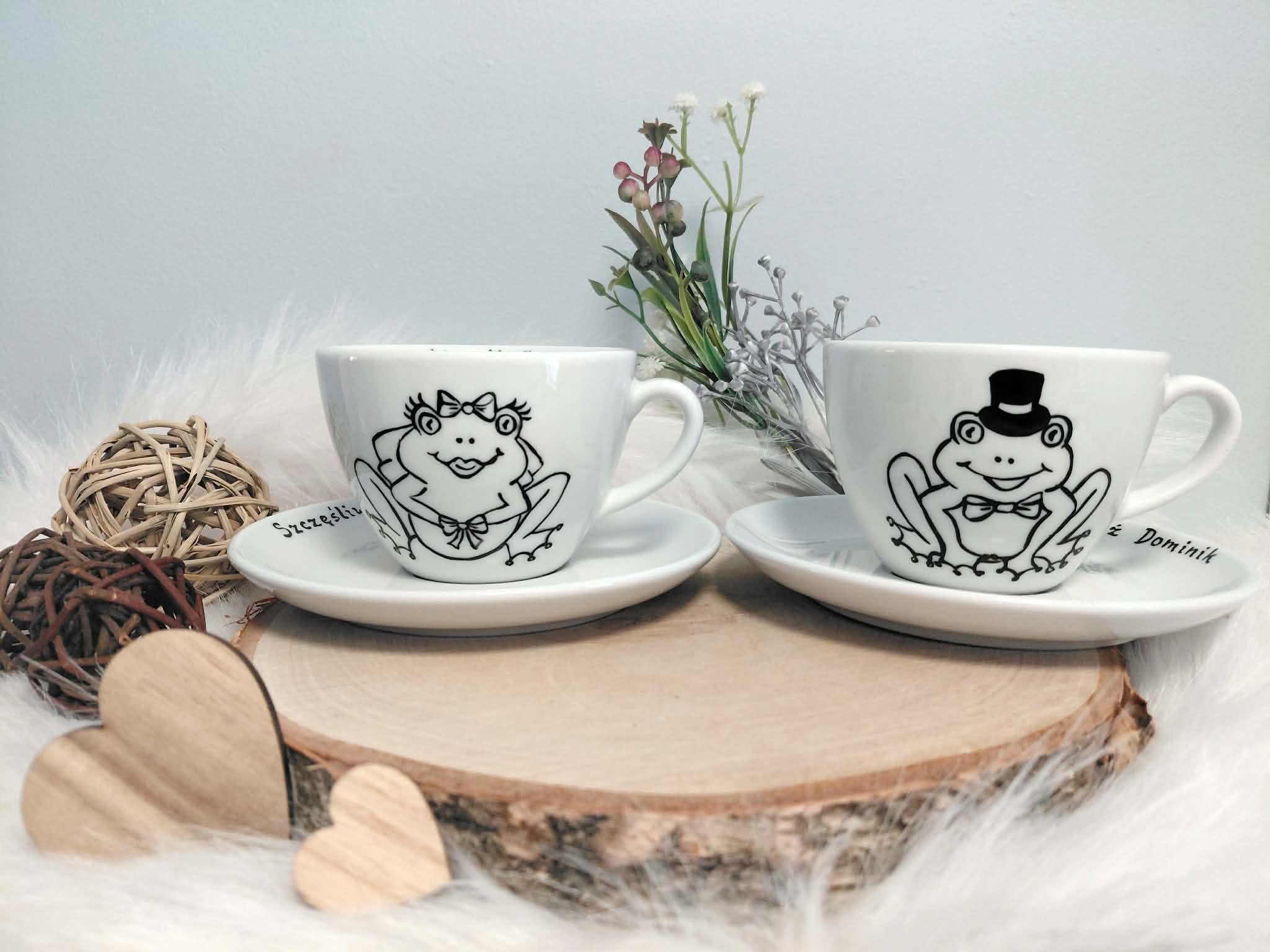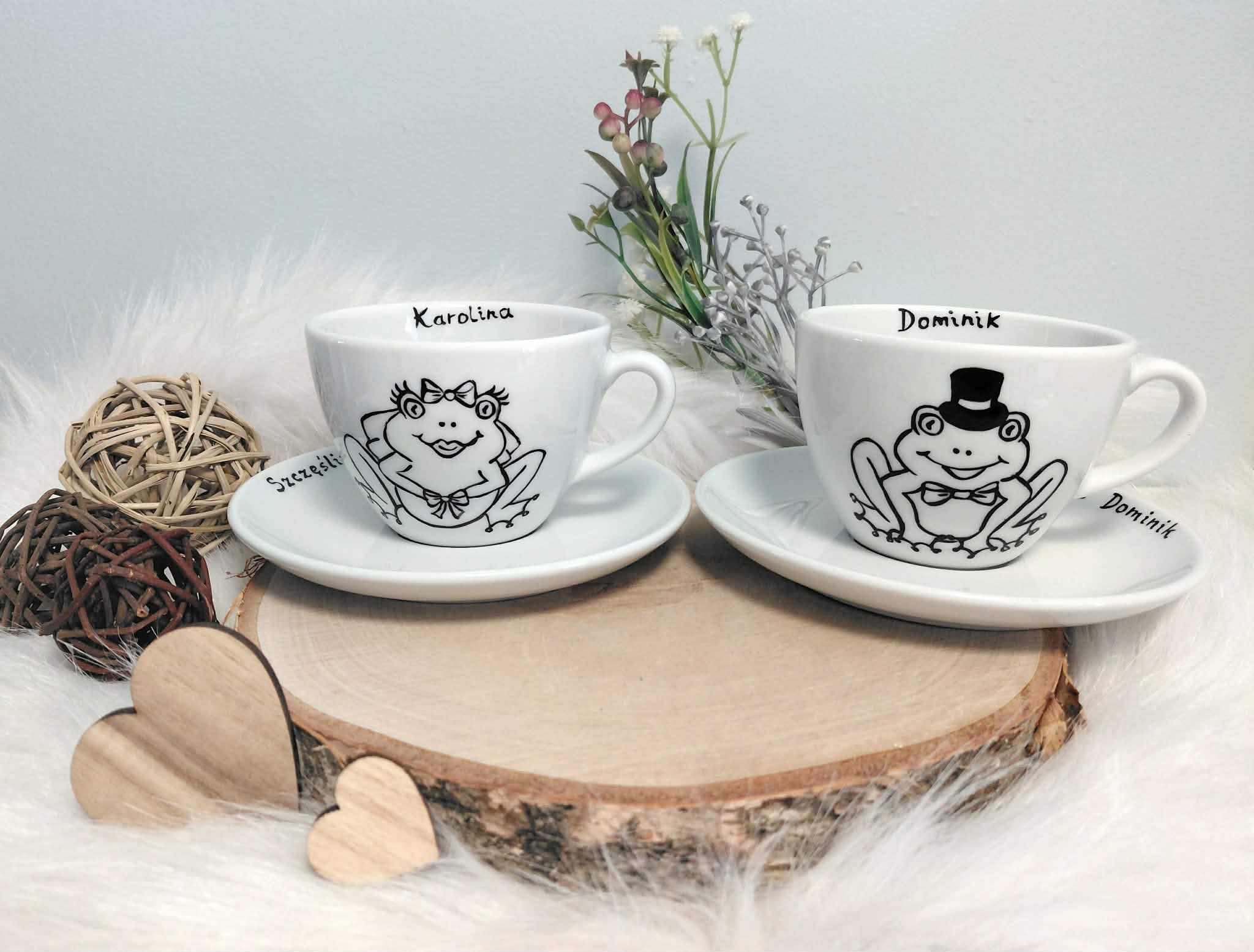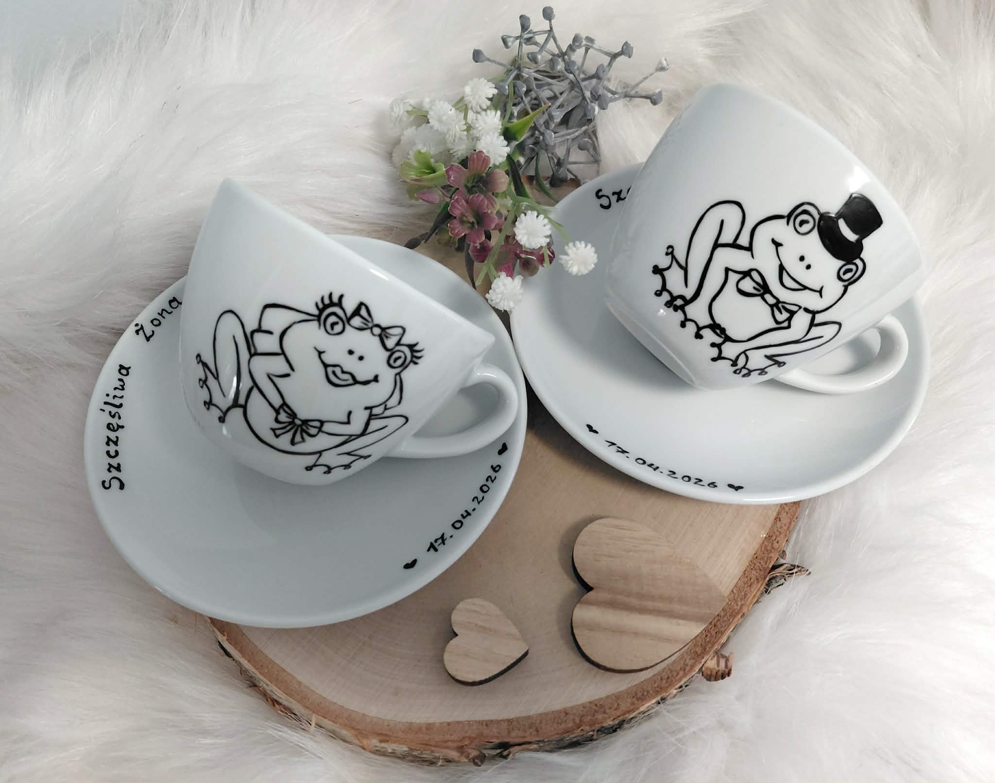 Wyjątkowe filiżanki ręcznie malowane na ślub żabki.