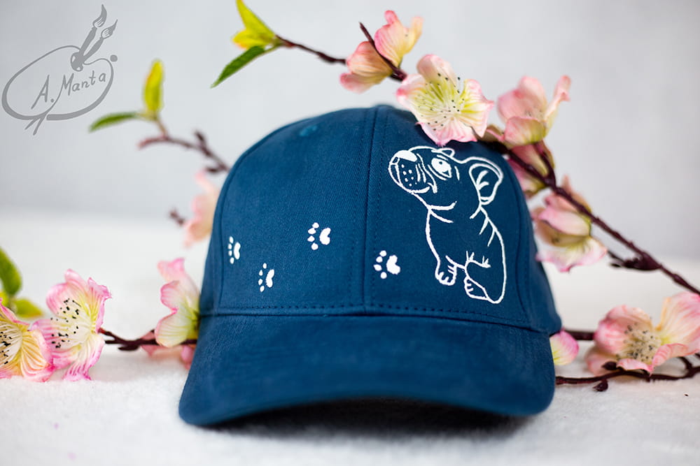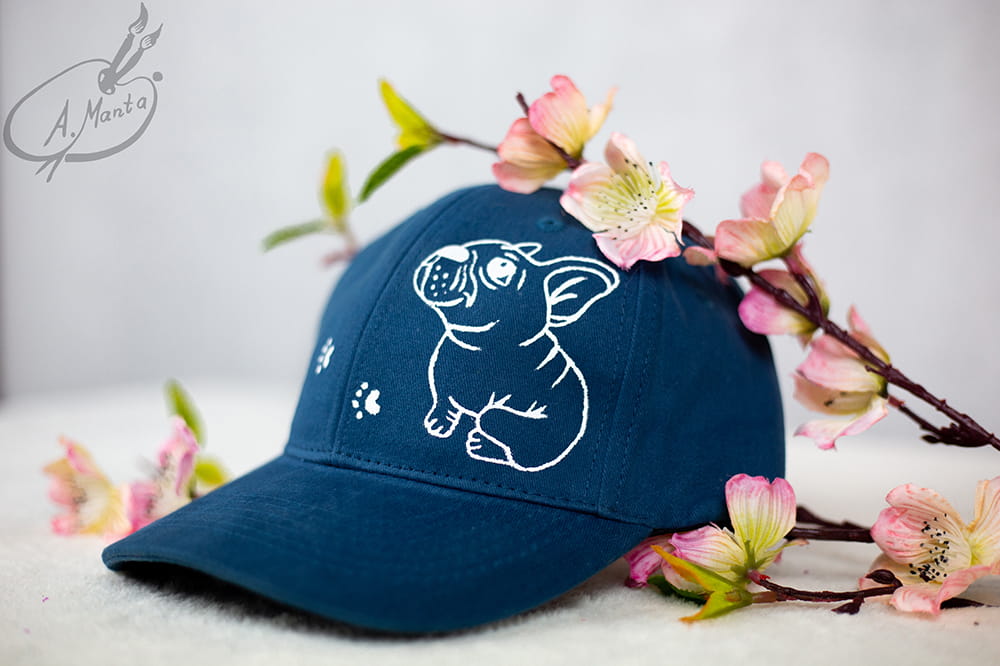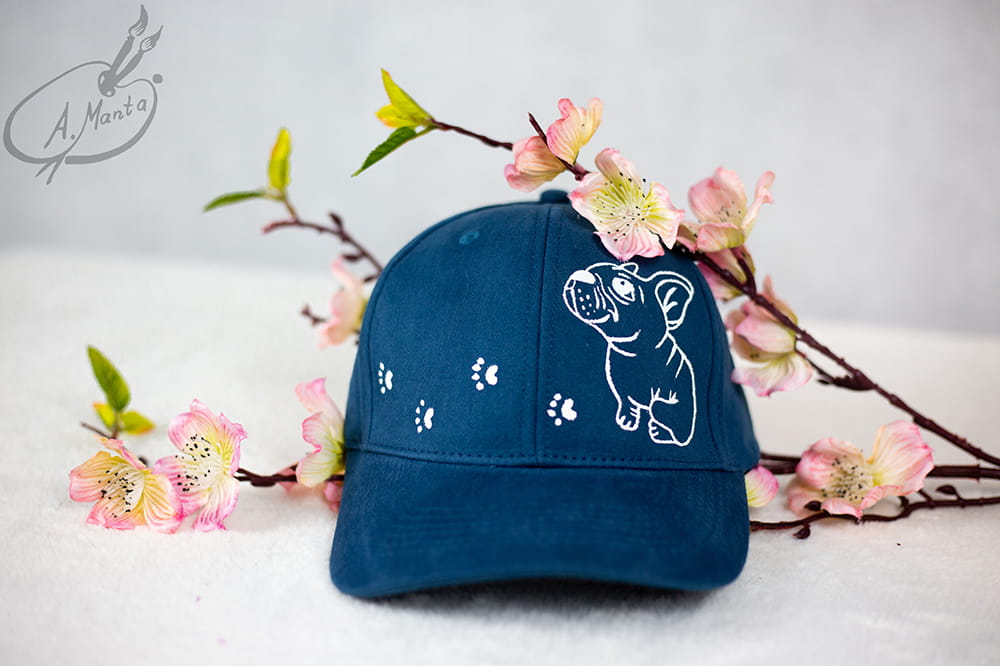 Wyjątkowa ręcznie malowana czapka z daszkiem Buldog francuski
