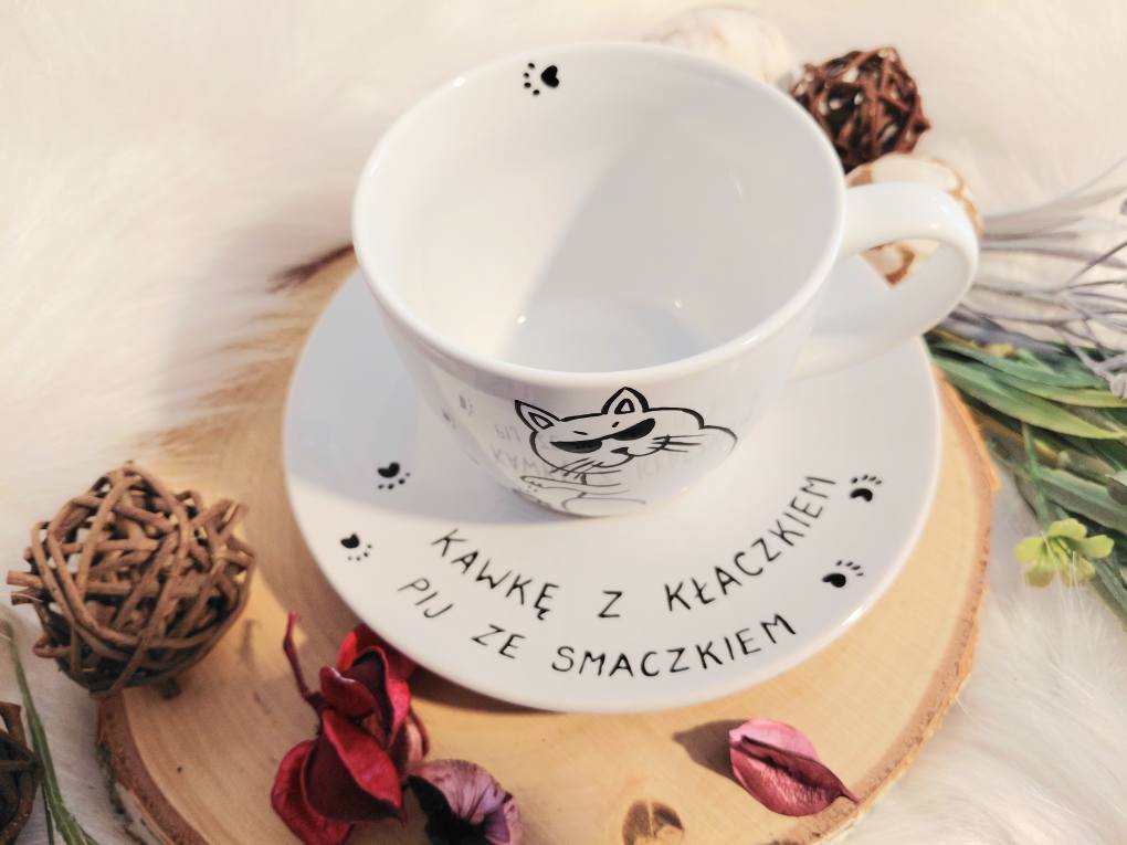 Unikatowa filiżanka ręcznie malowana Kotek i kawka