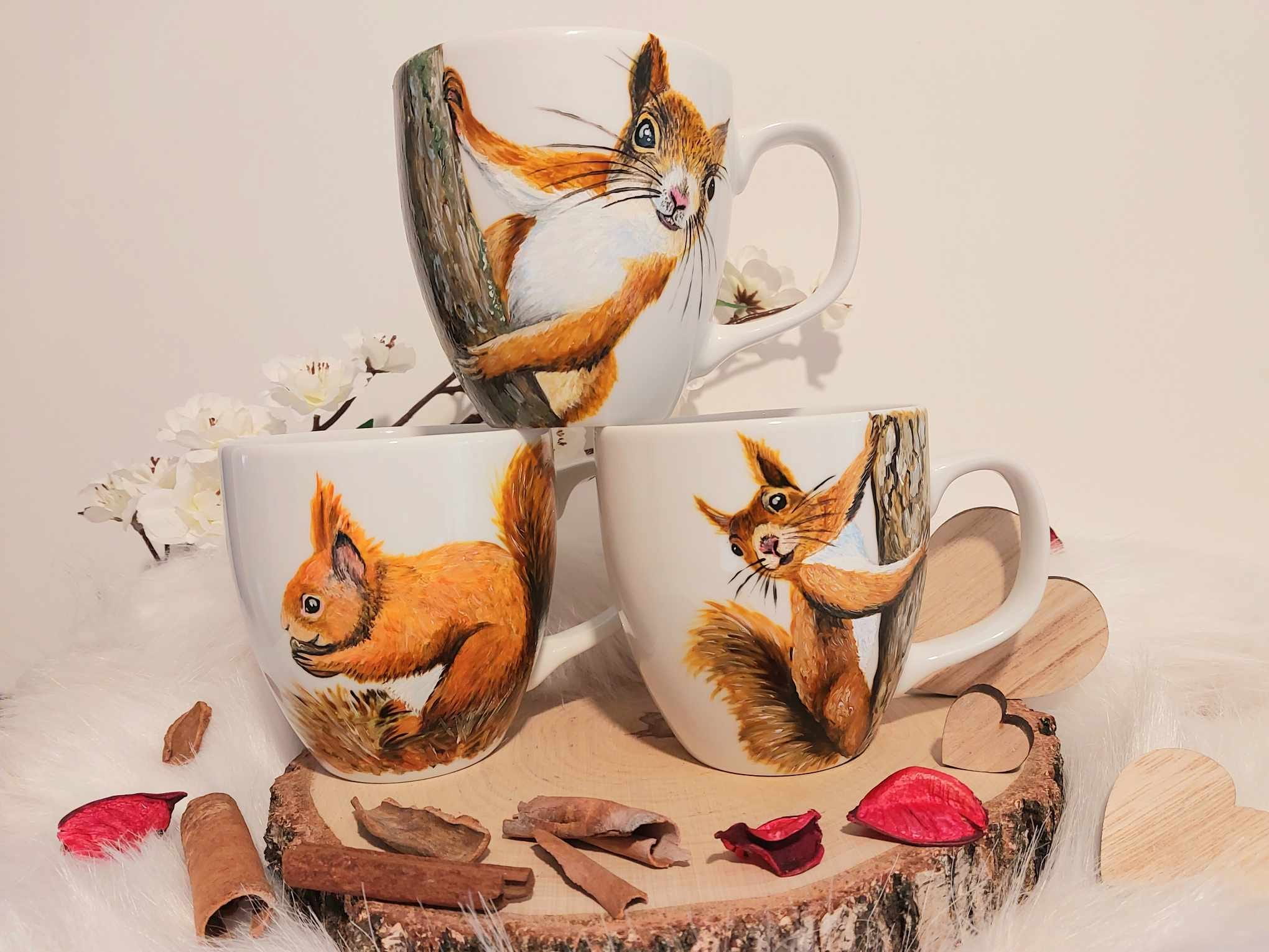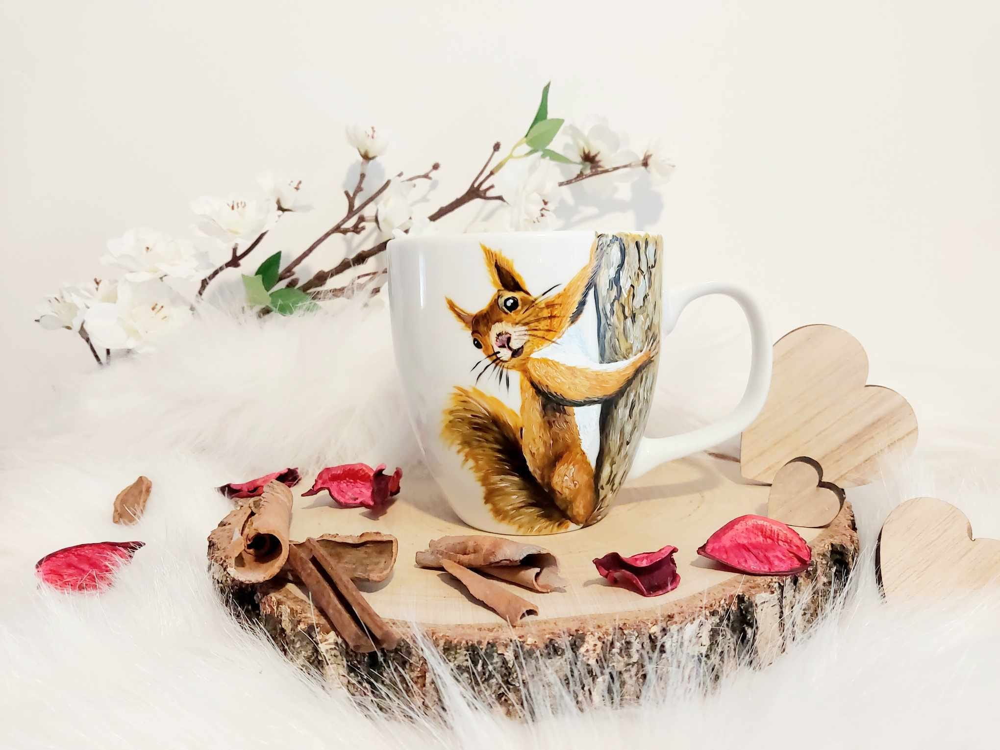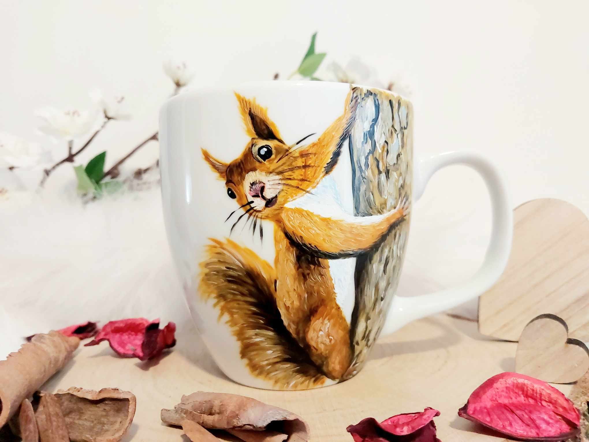 Wyjątkowy, ręcznie malowany kubek Wiewiórka
