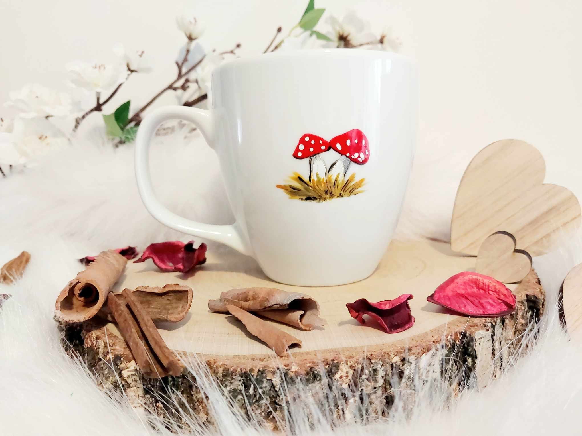 Kubek malowany specjalistycznymi farbami do ceramiki, absolutnie bezpiecznymi, wypalany w 160 stopniach, przez co malunek jest bardzo trwały. By cieszyć się nim dłuuugie lata, zaleca się mycie ręczne :)
