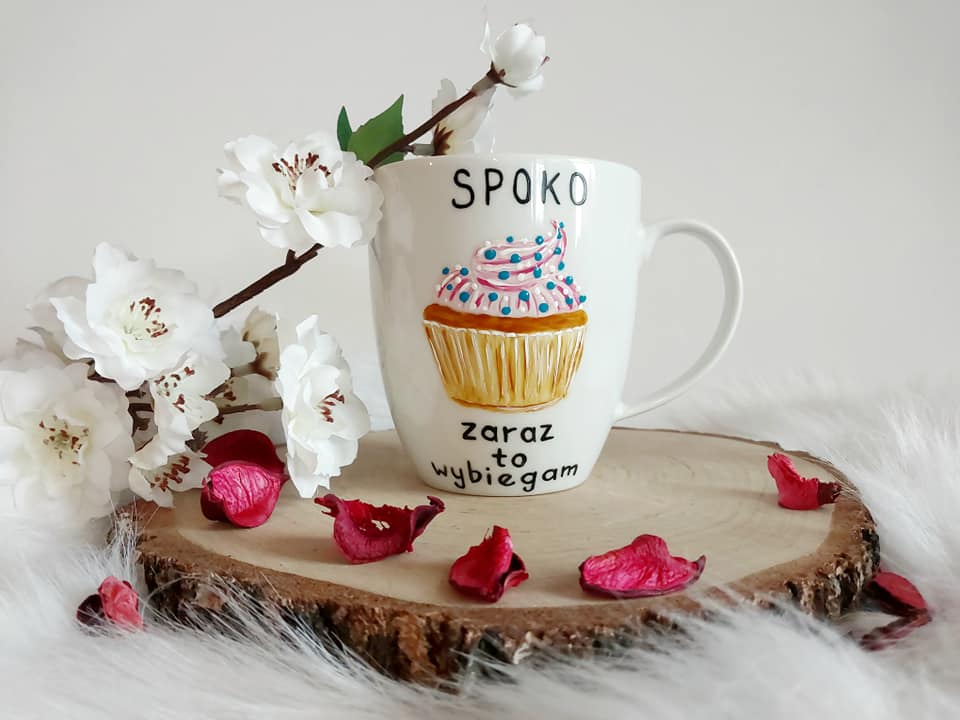 Wyjątkowy, ręcznie malowany kubek ciacho dla biegacza.