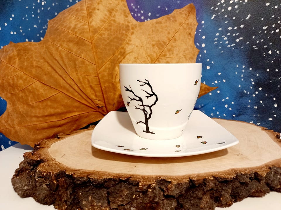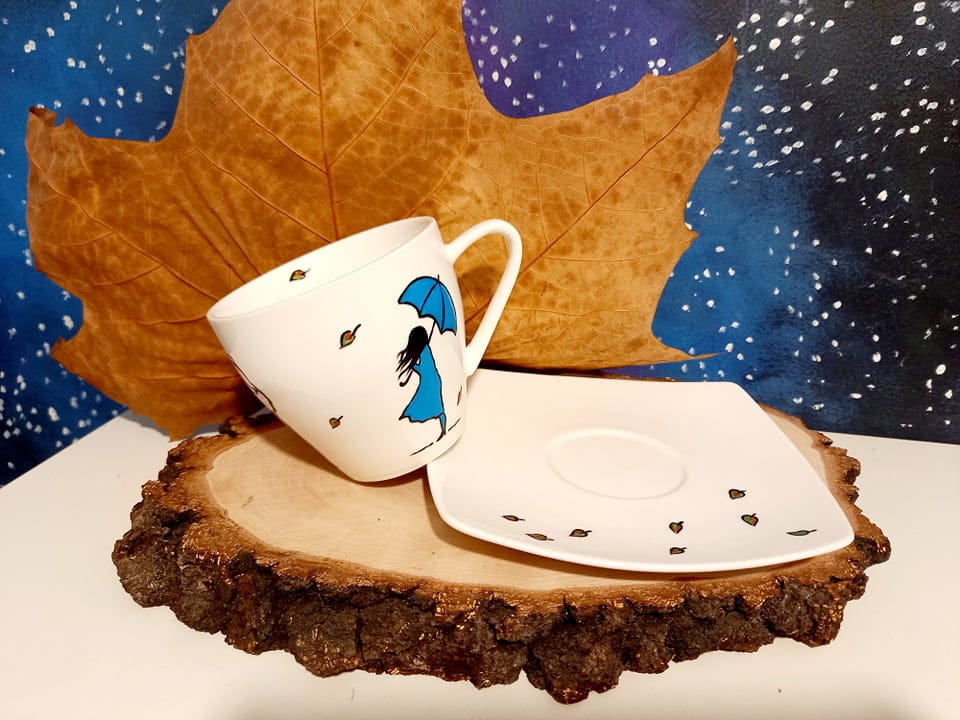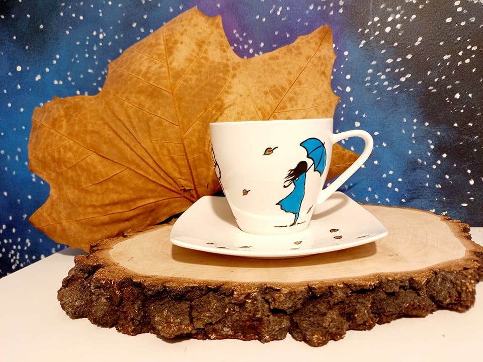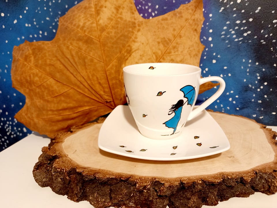 Wyjątkowa ręcznie malowana filiżanka Dziewczyna i wiatr