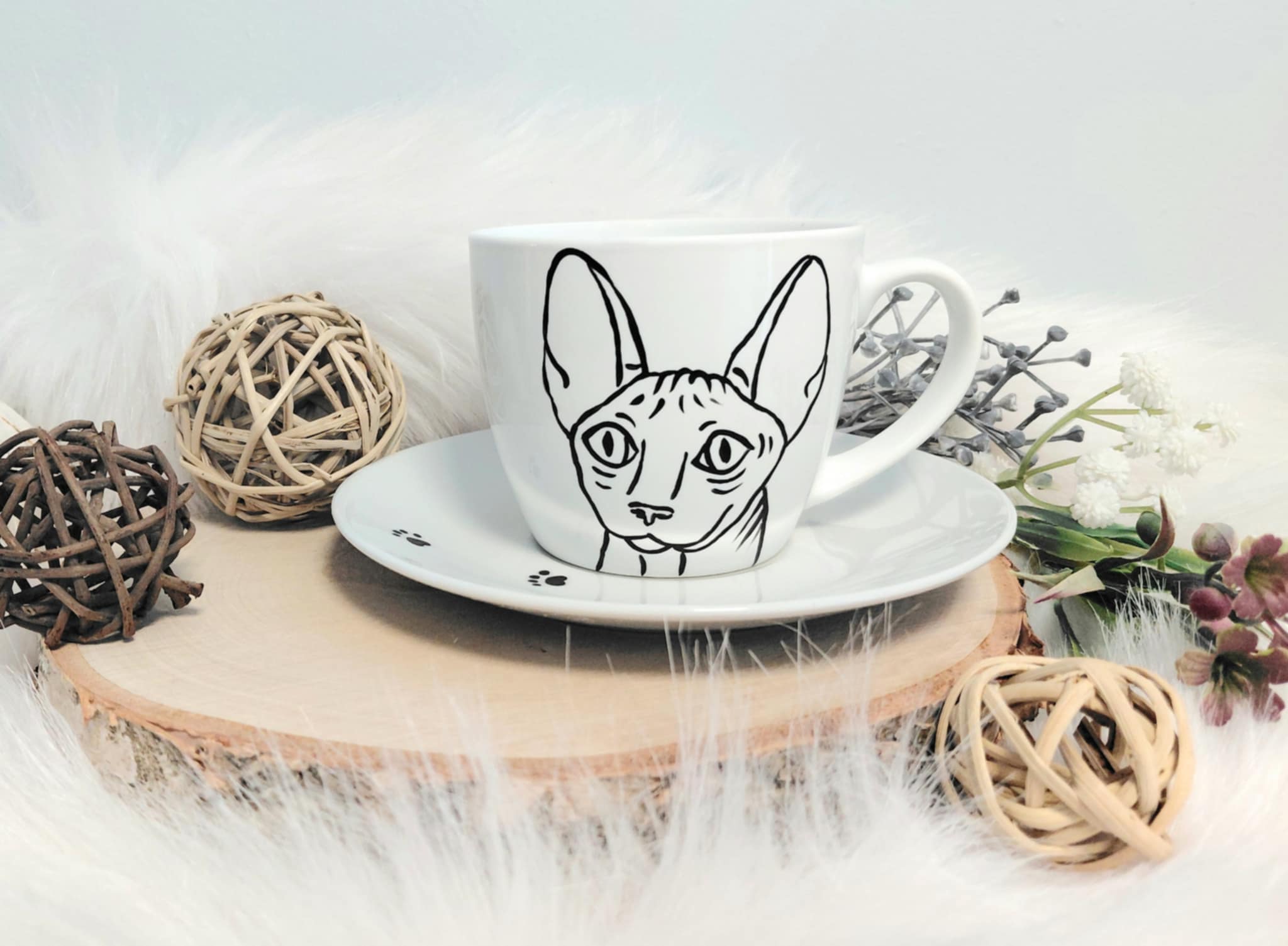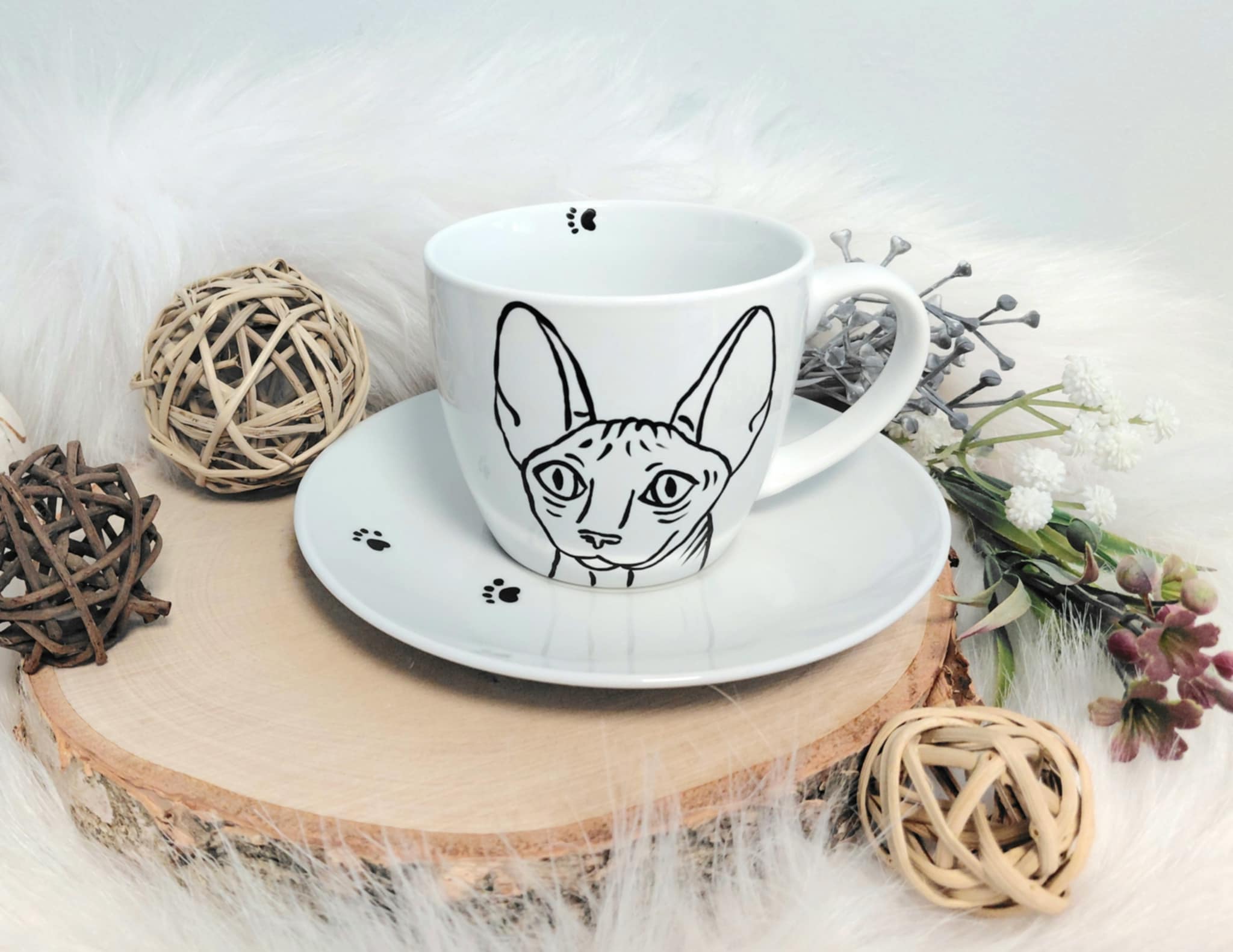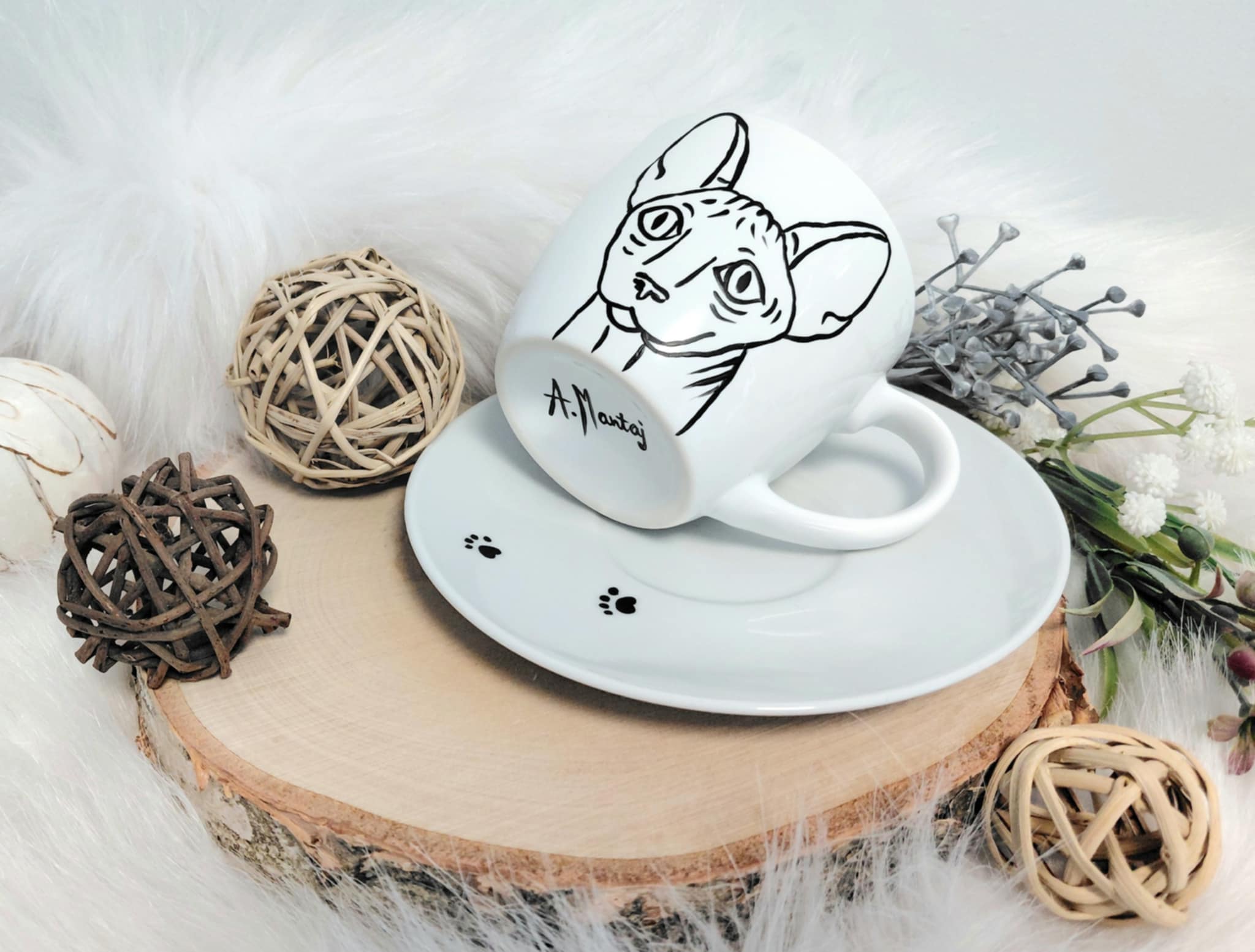 Wyjątkowa ręcznie malowana filiżanka Kot rasy Sfinks