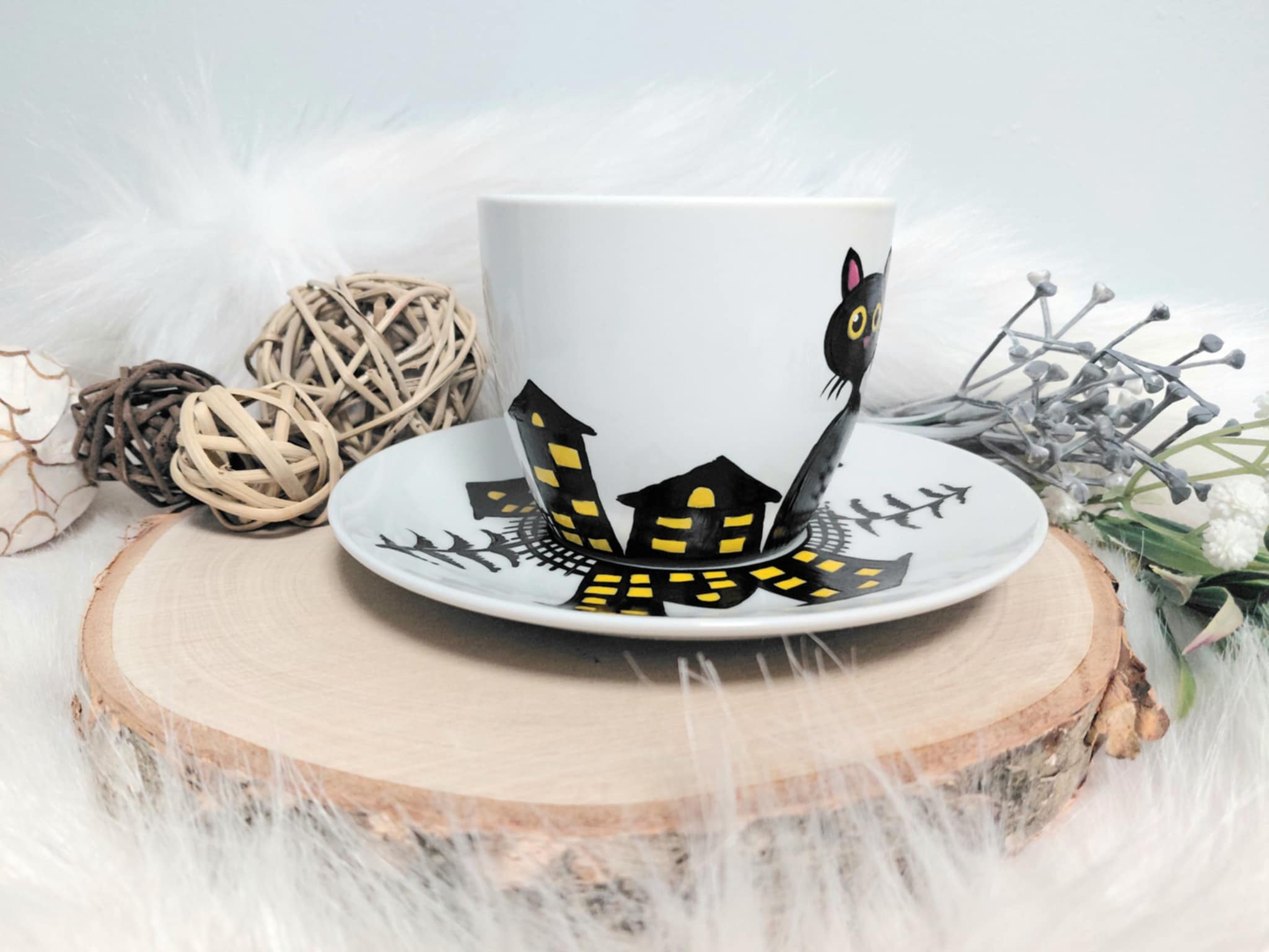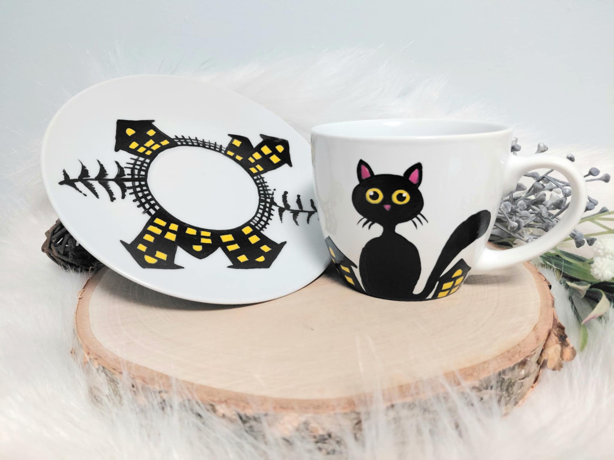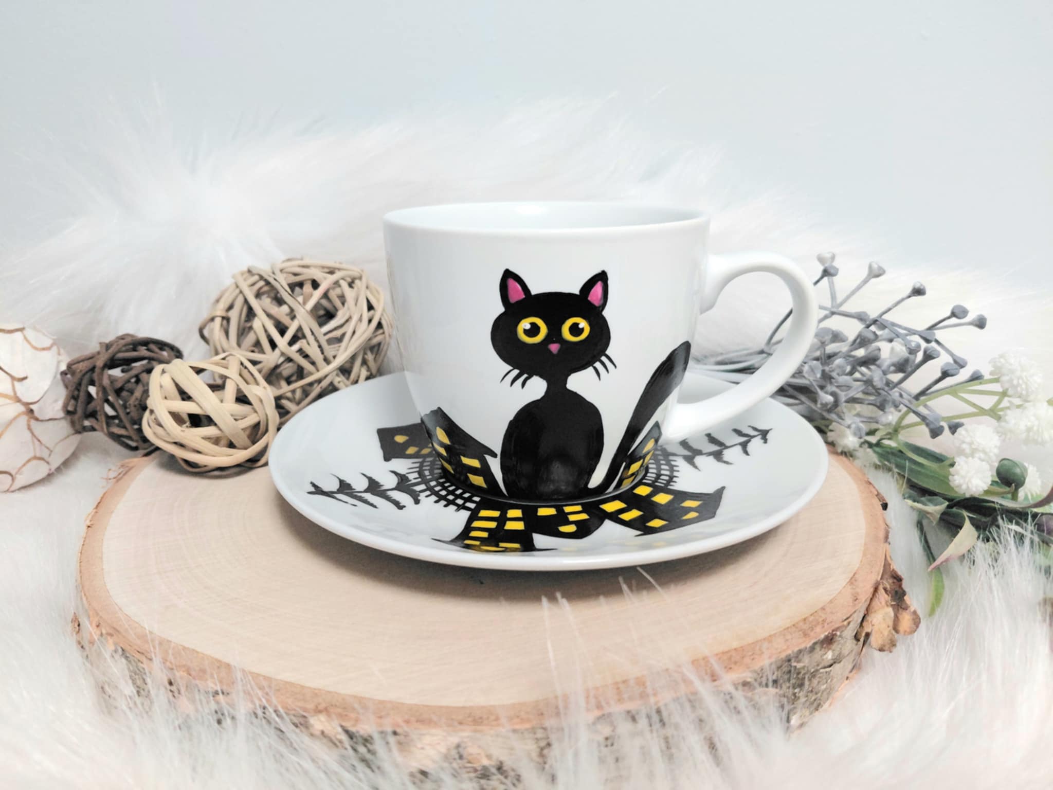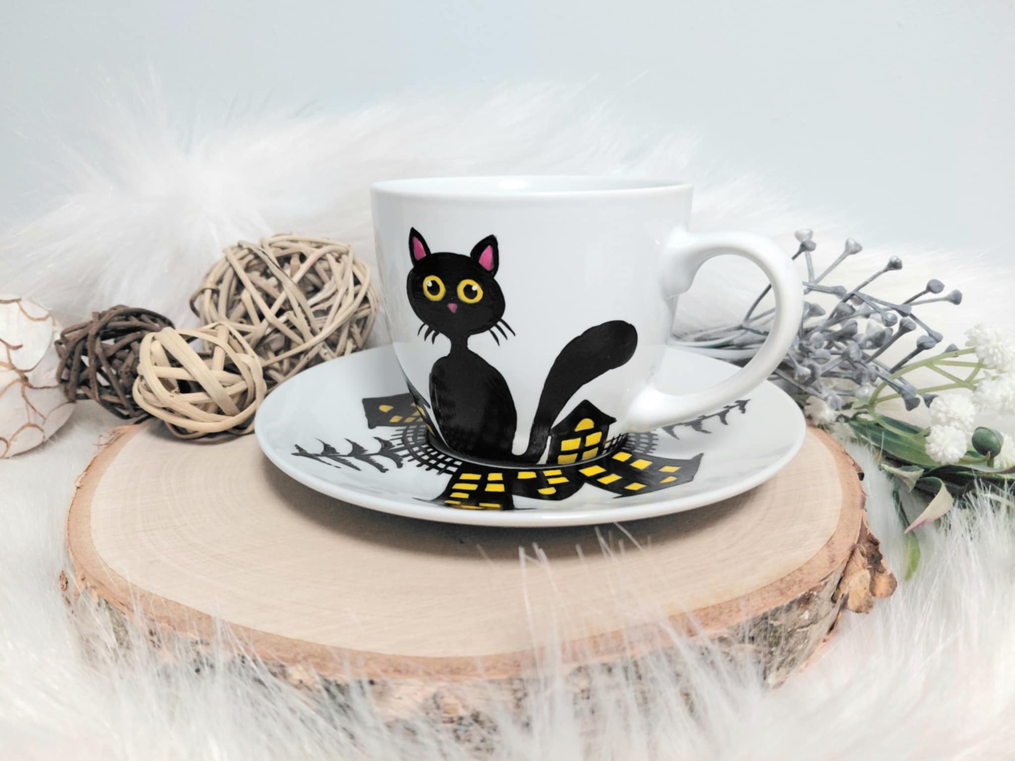 Wyjątkowa ręcznie malowana filiżanka Kot