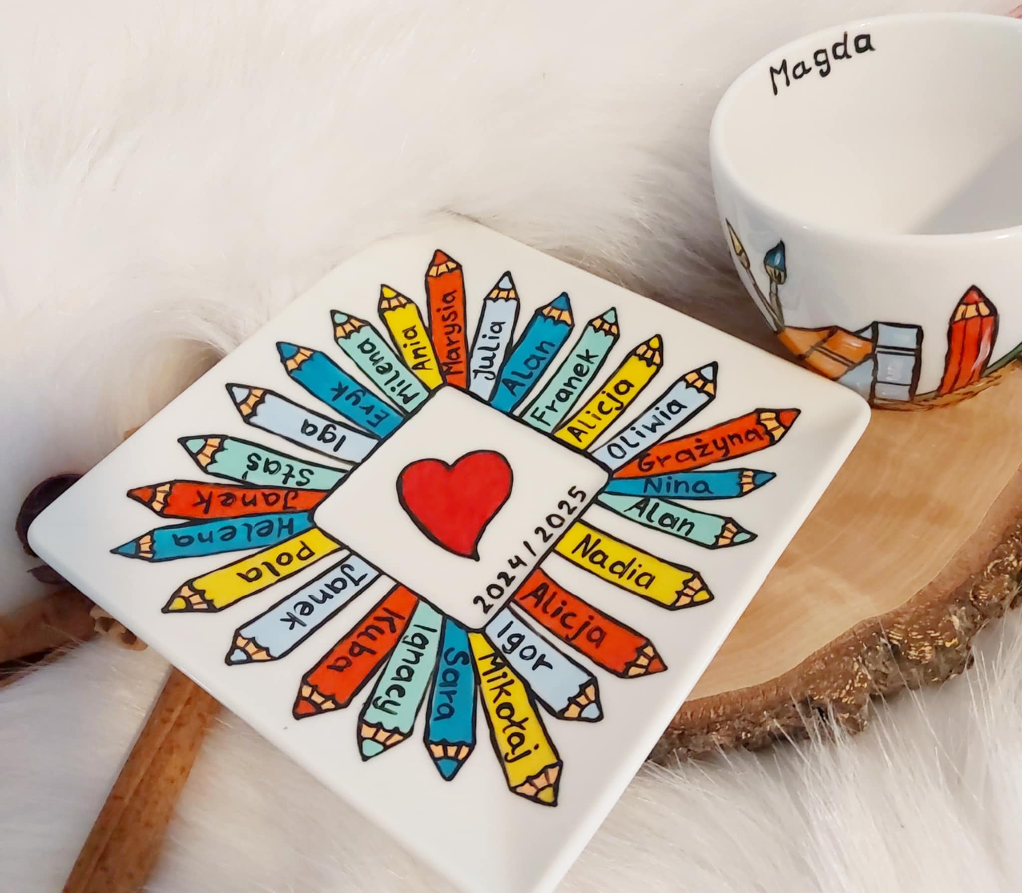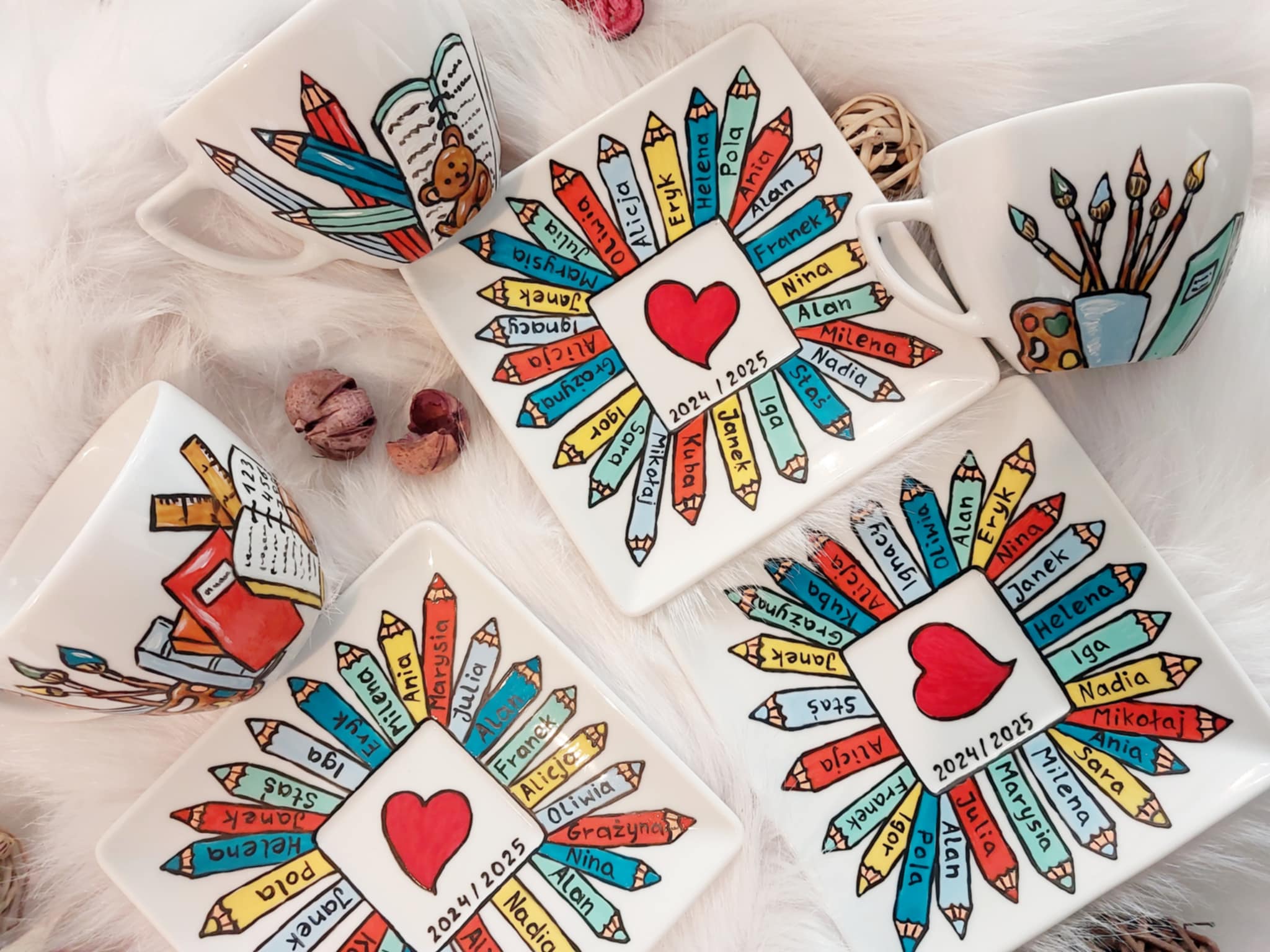 Wyjątkowa ręcznie malowana filiżanka na dzień nauczyciela zakończenie roku szkolnego
