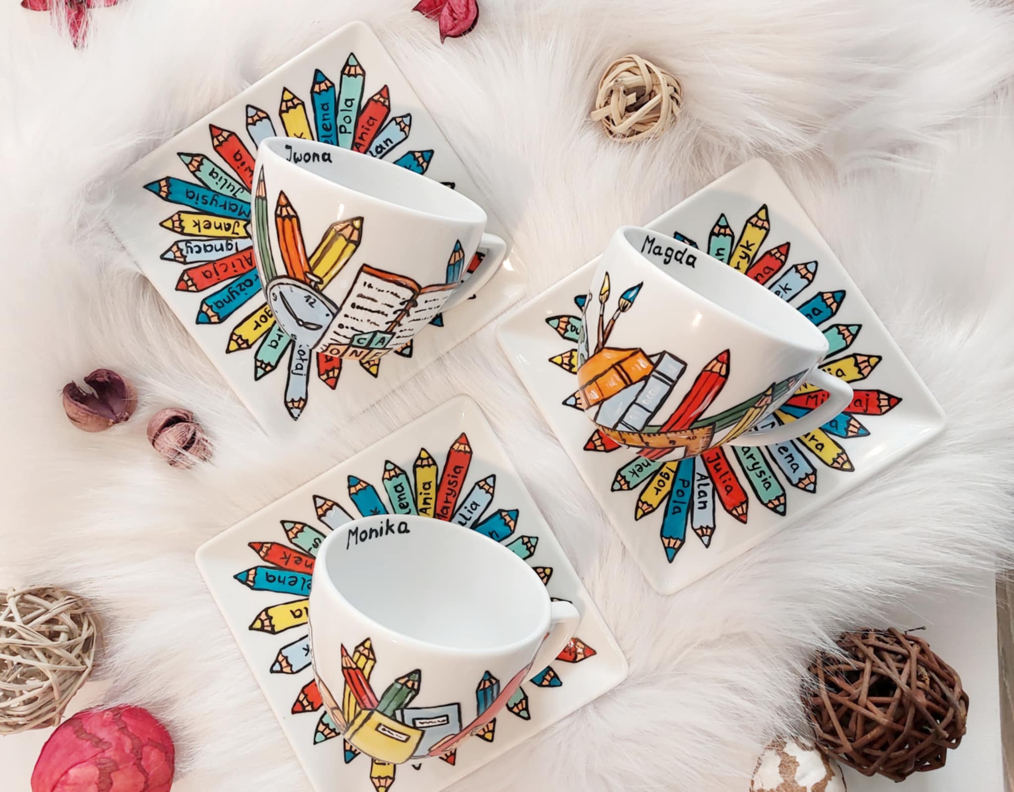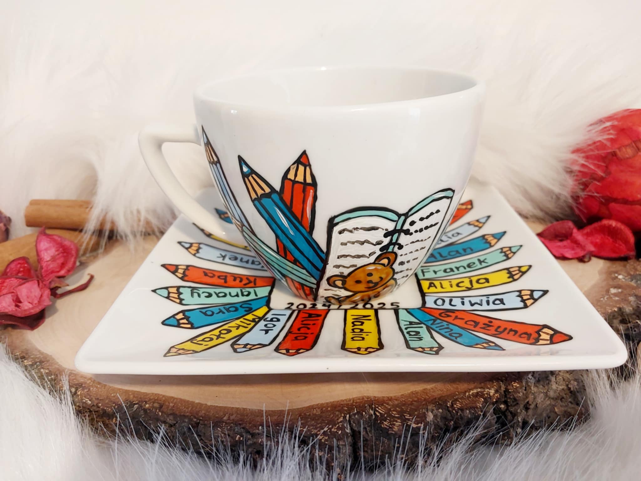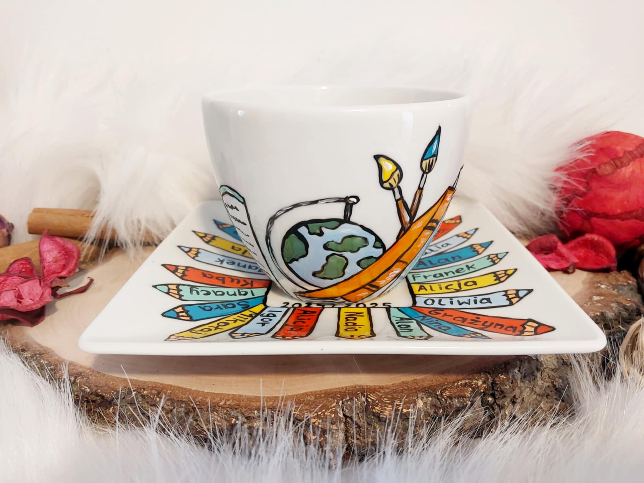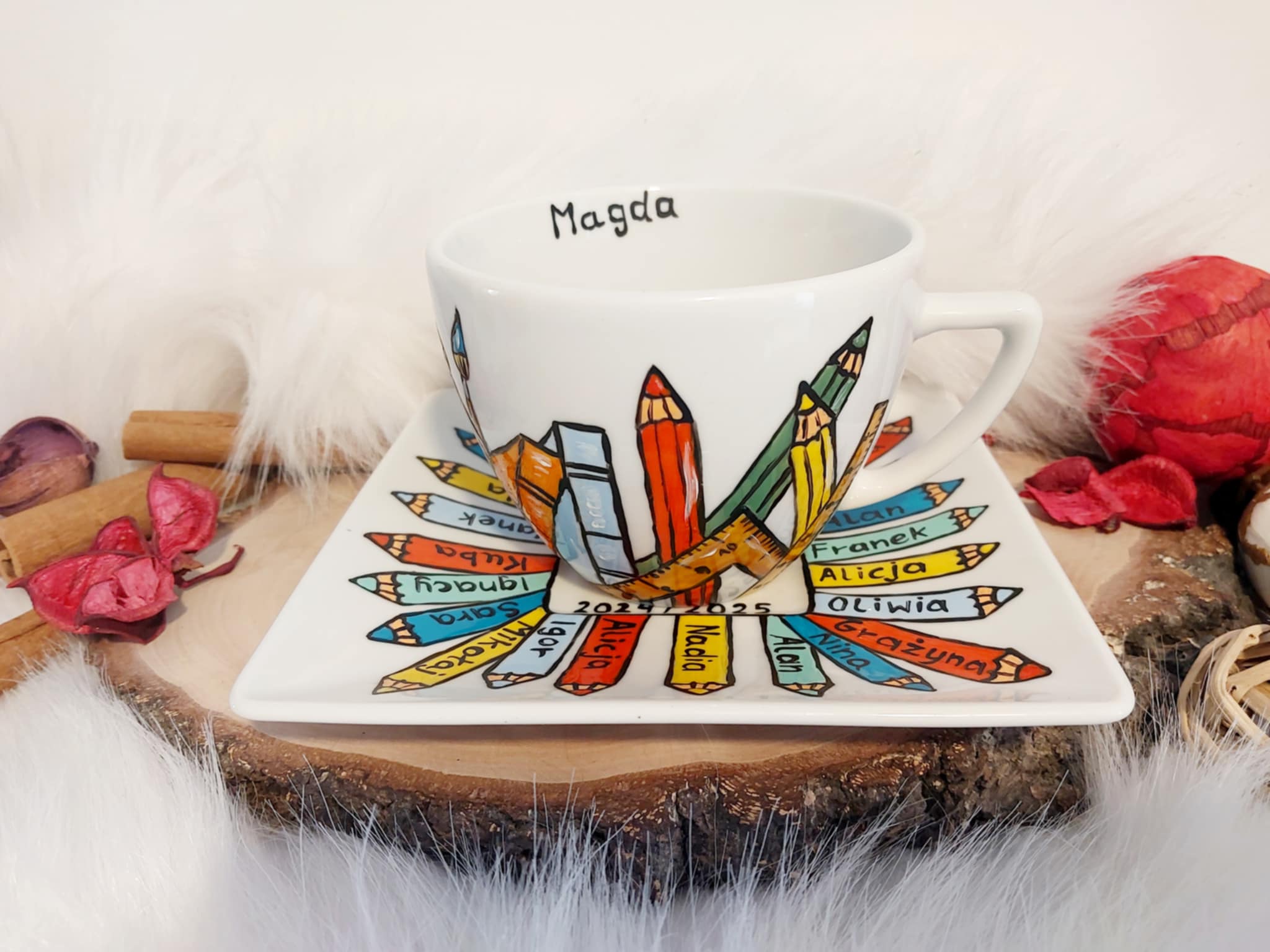 Wyjątkowa, ręcznie malowana filiżanka na Dzień Nauczyciela lub zakończenie roku szkolnego