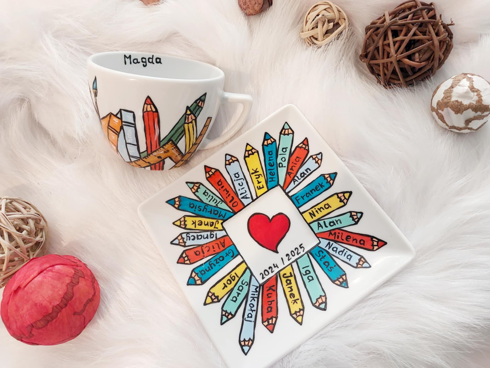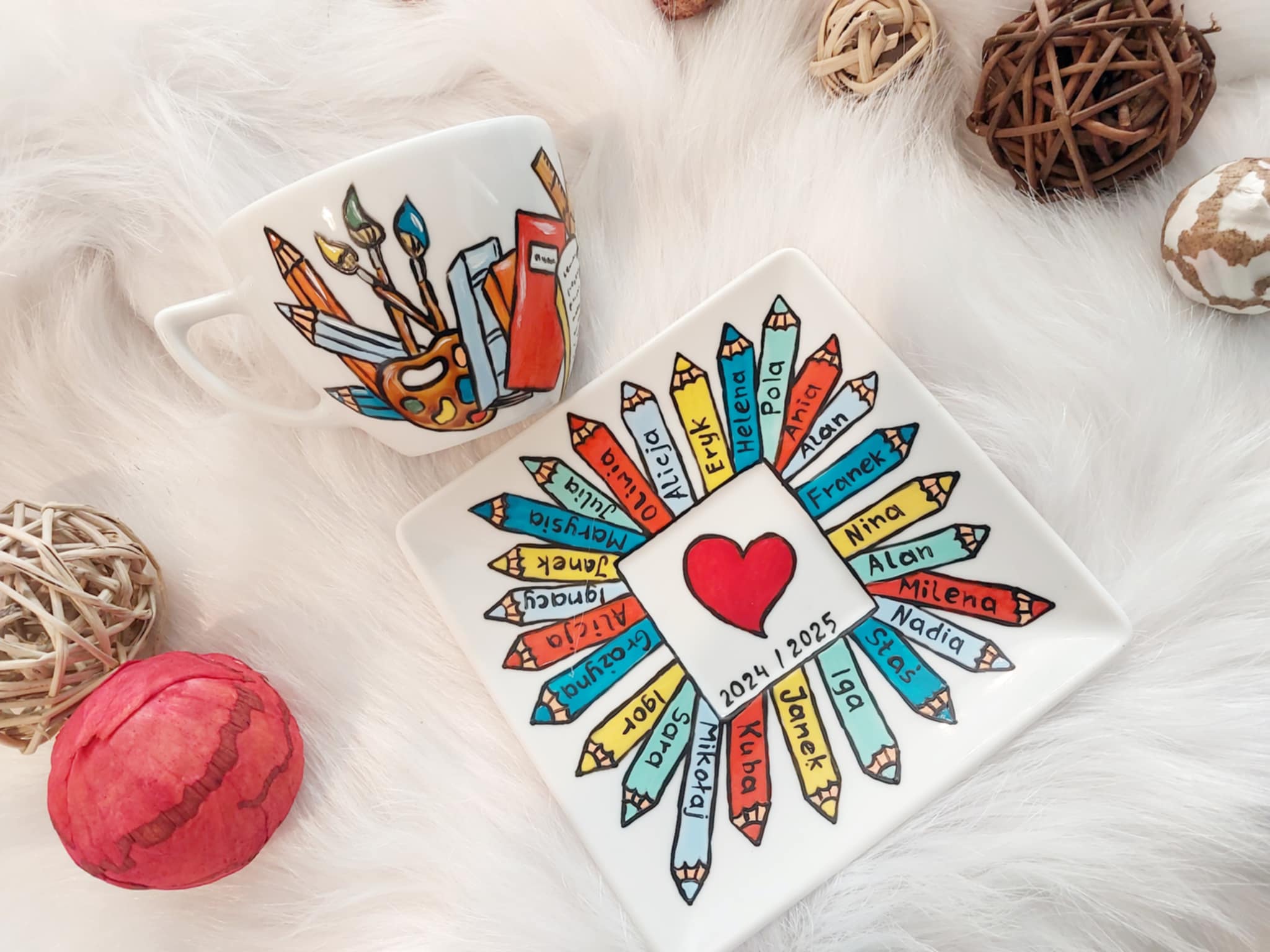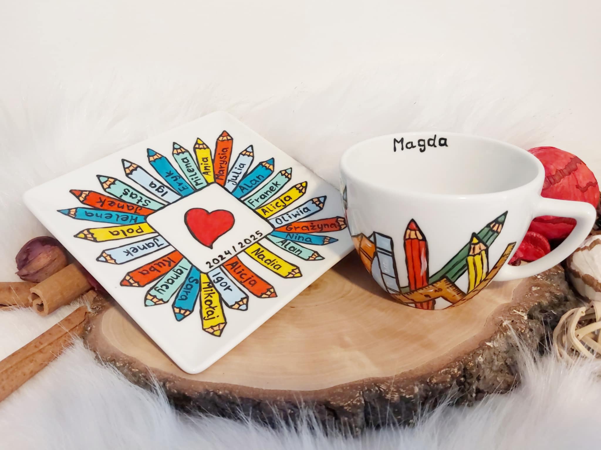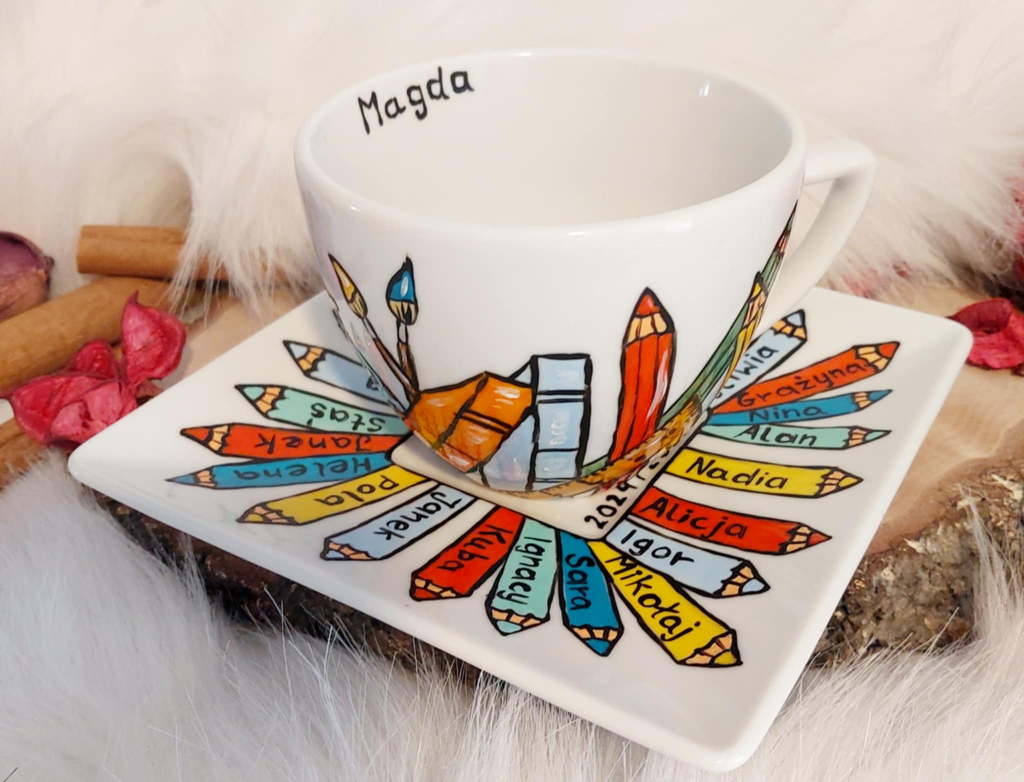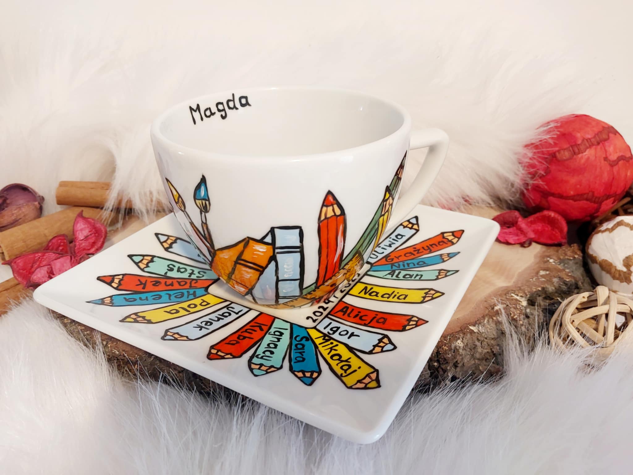 Wyjątkowa, ręcznie malowana filiżanka na Dzień Nauczyciela lub zakończenie roku szkolnego