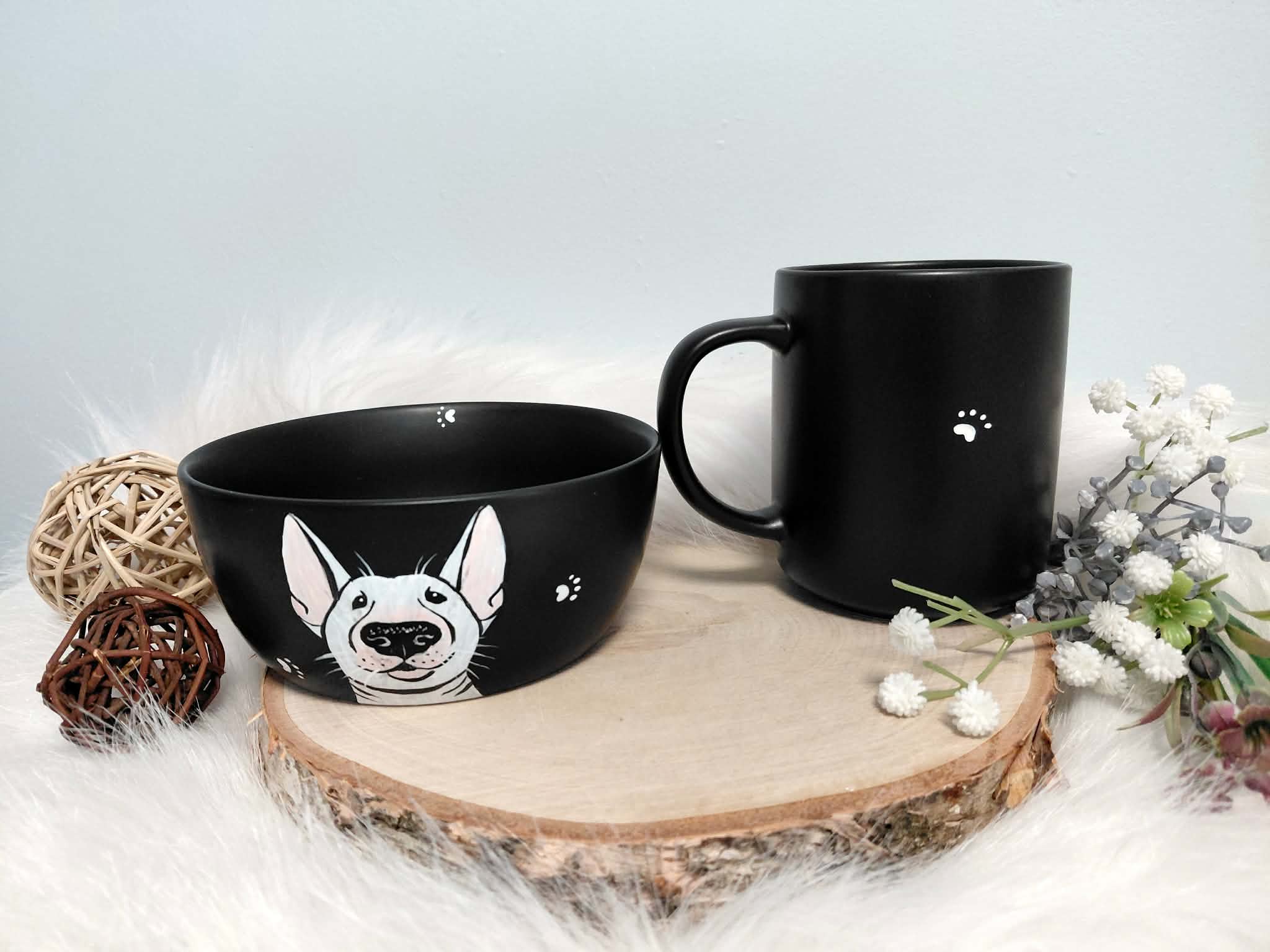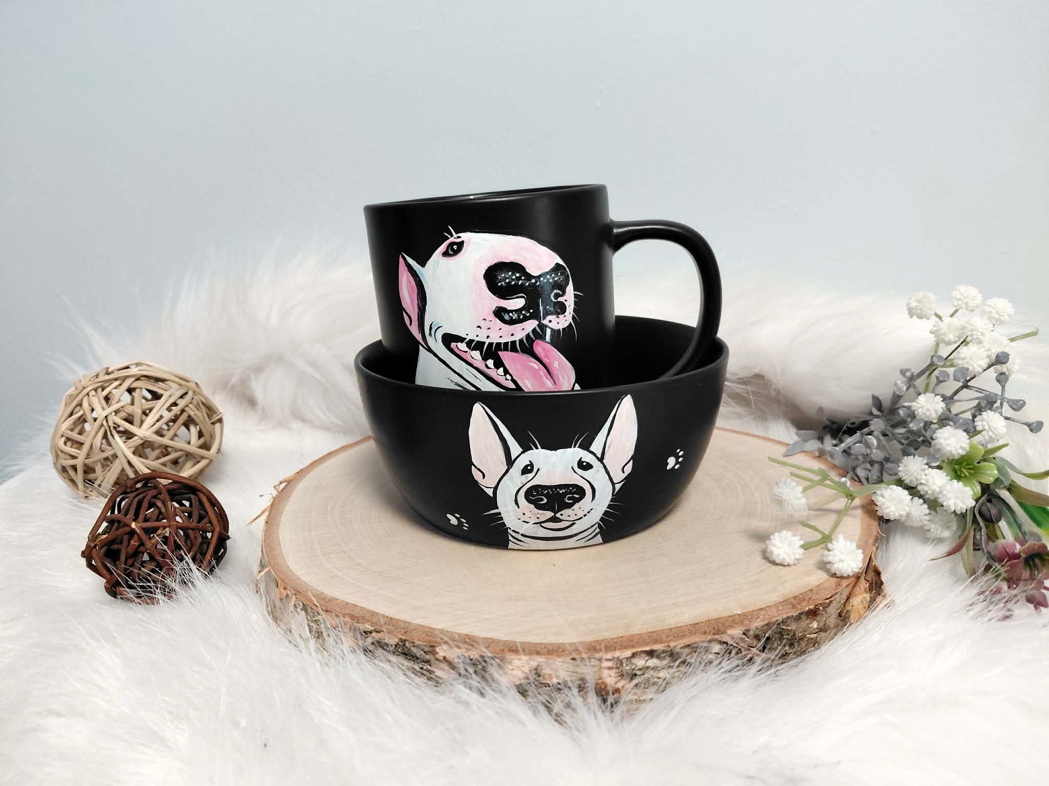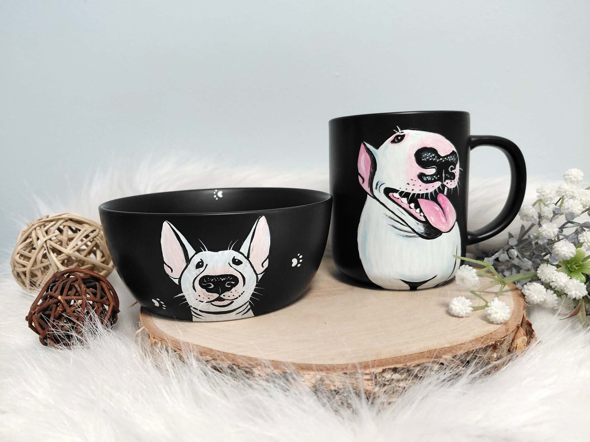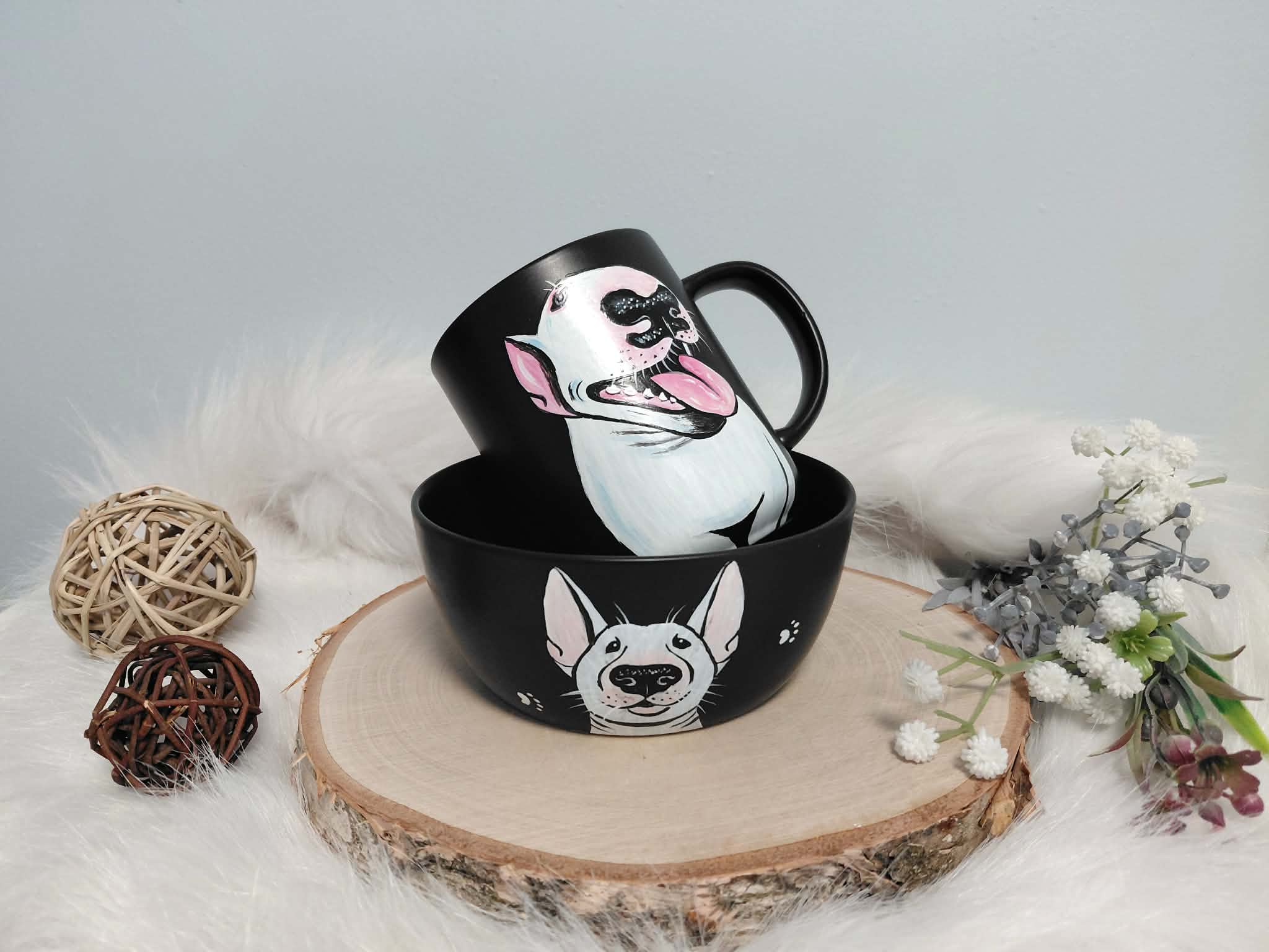 Wyjątkowy zestawy śniadaniowy ręcznie malowany Bulterier.